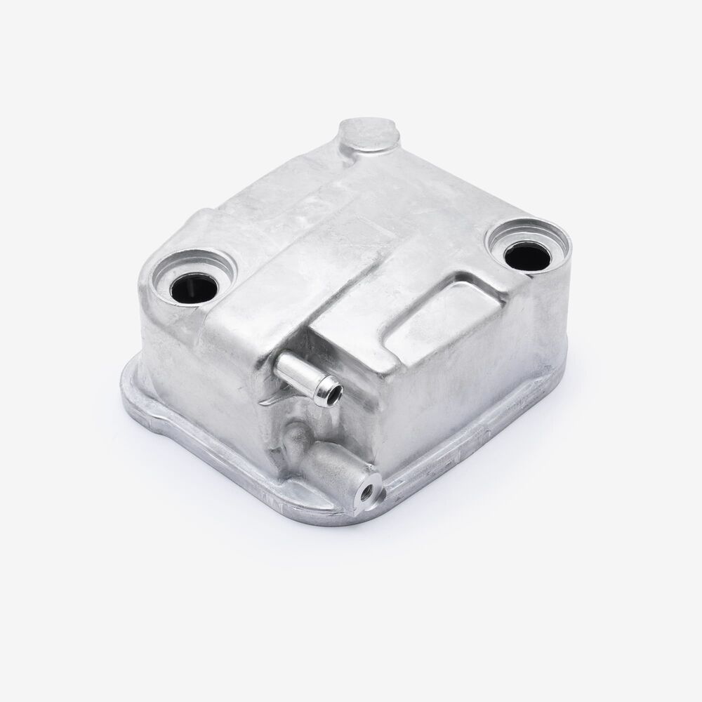 The cylinder head cover in a motorcycle seals the top of the cylinder head, protecting internal components from dirt and debris while also containing the engine's oil supply.