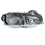 The drive belt cover in a CVT (Continuously Variable Transmission) system on a scooter or motorcycle protects the drive belt and pulleys from debris, dust, and damage. It also helps ensure proper tension and alignment of the belt while contributing to the system's overall safety and efficiency.