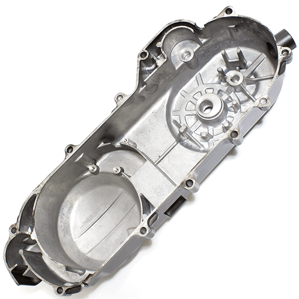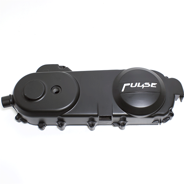 The drive belt cover in a CVT (Continuously Variable Transmission) system on a scooter or motorcycle protects the drive belt and pulleys from debris, dust, and damage. It also helps ensure proper tension and alignment of the belt while contributing to the system's overall safety and efficiency.