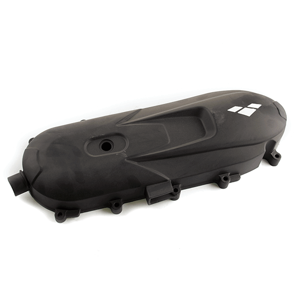 The drive belt cover in a CVT (Continuously Variable Transmission) system on a scooter or motorcycle protects the drive belt and pulleys from debris, dust, and damage. It also helps ensure proper tension and alignment of the belt while contributing to the system's overall safety and efficiency.