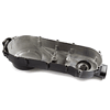 The drive belt cover in a CVT (Continuously Variable Transmission) system on a scooter or motorcycle protects the drive belt and pulleys from debris, dust, and damage. It also helps ensure proper tension and alignment of the belt while contributing to the system's overall safety and efficiency.