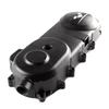 The drive belt cover in a CVT (Continuously Variable Transmission) system on a scooter or motorcycle protects the drive belt and pulleys from debris, dust, and damage. It also helps ensure proper tension and alignment of the belt while contributing to the system's overall safety and efficiency.
