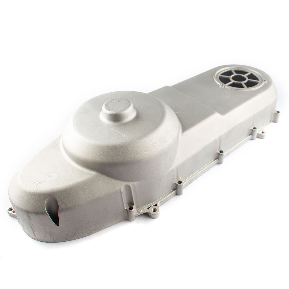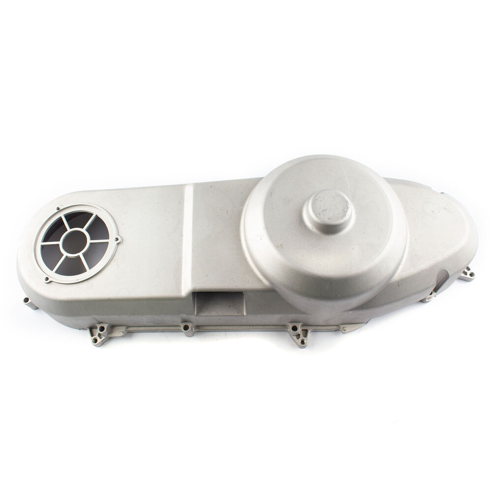 The drive belt cover in a CVT (Continuously Variable Transmission) system on a scooter or motorcycle protects the drive belt and pulleys from debris, dust, and damage. It also helps ensure proper tension and alignment of the belt while contributing to the system's overall safety and efficiency.