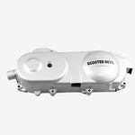 The drive belt cover in a CVT (Continuously Variable Transmission) system on a scooter or motorcycle protects the drive belt and pulleys from debris, dust, and damage. It also helps ensure proper tension and alignment of the belt while contributing to the system's overall safety and efficiency.
