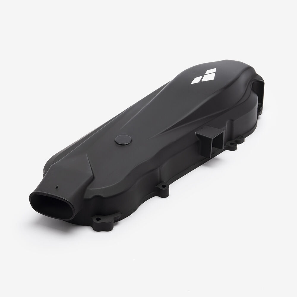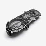 The drive belt cover in a CVT (Continuously Variable Transmission) system on a scooter or motorcycle protects the drive belt and pulleys from debris, dust, and damage. It also helps ensure proper tension and alignment of the belt while contributing to the system's overall safety and efficiency.