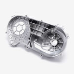 The drive belt cover in a CVT (Continuously Variable Transmission) system on a scooter or motorcycle protects the drive belt and pulleys from debris, dust, and damage. It also helps ensure proper tension and alignment of the belt while contributing to the system's overall safety and efficiency.