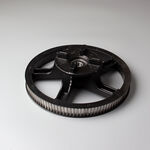 The drive pulley in a scooter's CVT (Continuously Variable Transmission) system transfers engine power to the transmission belt, allowing for variable gear ratios and smooth, efficient acceleration by adjusting the pulley diameter based on engine speed.