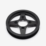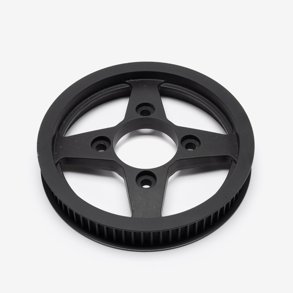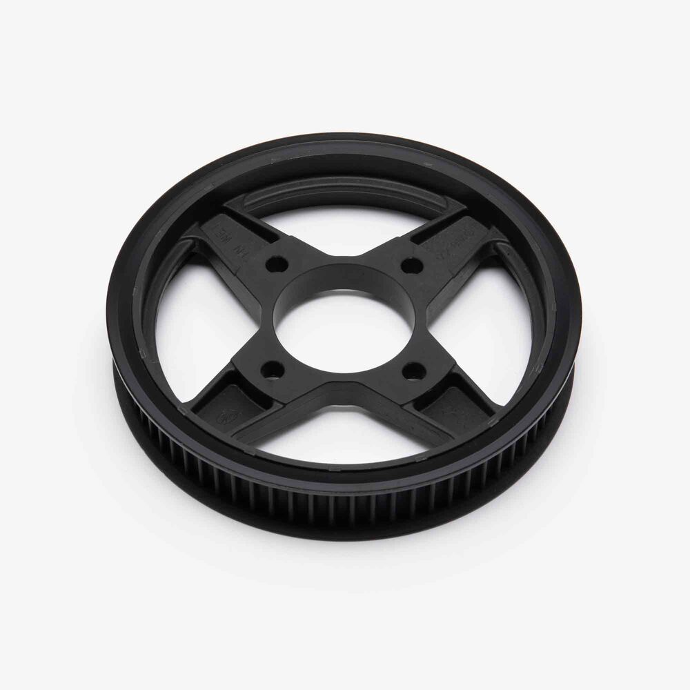 The drive pulley in a scooter's CVT (Continuously Variable Transmission) system transfers engine power to the transmission belt, allowing for variable gear ratios and smooth, efficient acceleration by adjusting the pulley diameter based on engine speed.
