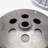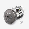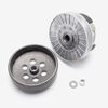 The drive pulley in a scooter's CVT (Continuously Variable Transmission) system transfers engine power to the transmission belt, allowing for variable gear ratios and smooth, efficient acceleration by adjusting the pulley diameter based on engine speed.