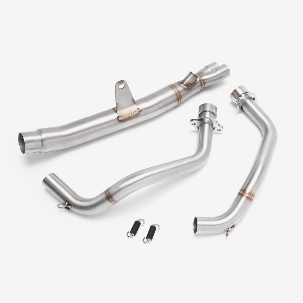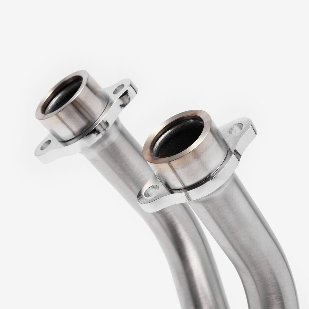 Designed with you in mind, our downpipes are a direct replacement for the original equipment (OE) part, allowing for a seamless installation process.The exit point of the downpipe aligns perfectly with the OE component, ensuring compatibility with the Lextek range of Slip-on kits, as well as the OE silencer and any other aftermarket silencers you may wish to use.This means you can easily customize your bikes exhaust system to suit your preferences, whether your looking for a particular sound, performance characteristic, or aesthetic.