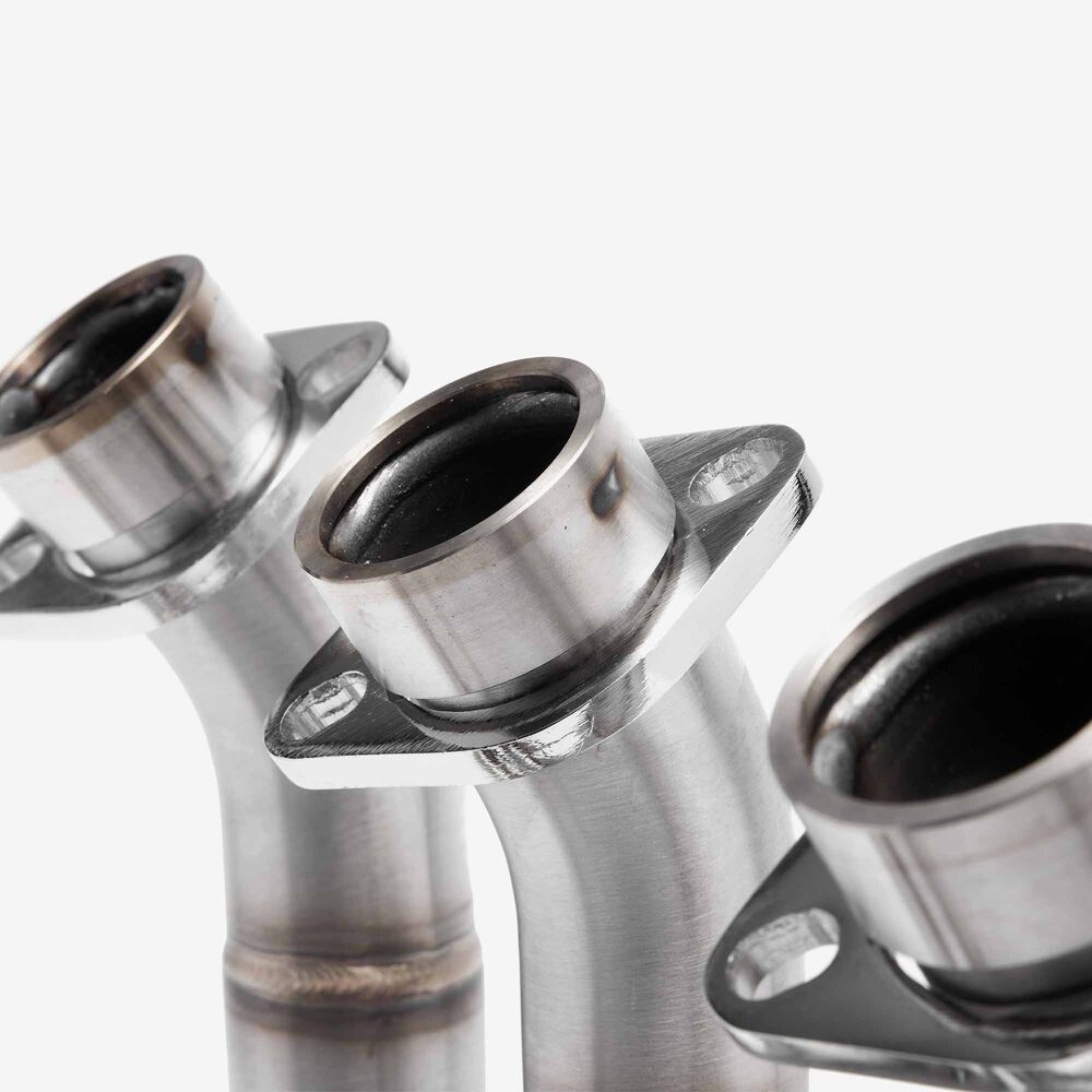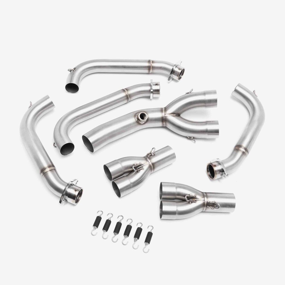 Designed with you in mind, our downpipes are a direct replacement for the original equipment (OE) part, allowing for a seamless installation process.The exit point of the downpipe aligns perfectly with the OE component, ensuring compatibility with the Lextek range of Slip-on kits, as well as the OE silencer and any other aftermarket silencers you may wish to use.This means you can easily customize your bikes exhaust system to suit your preferences, whether your looking for a particular sound, performance characteristic, or aesthetic.