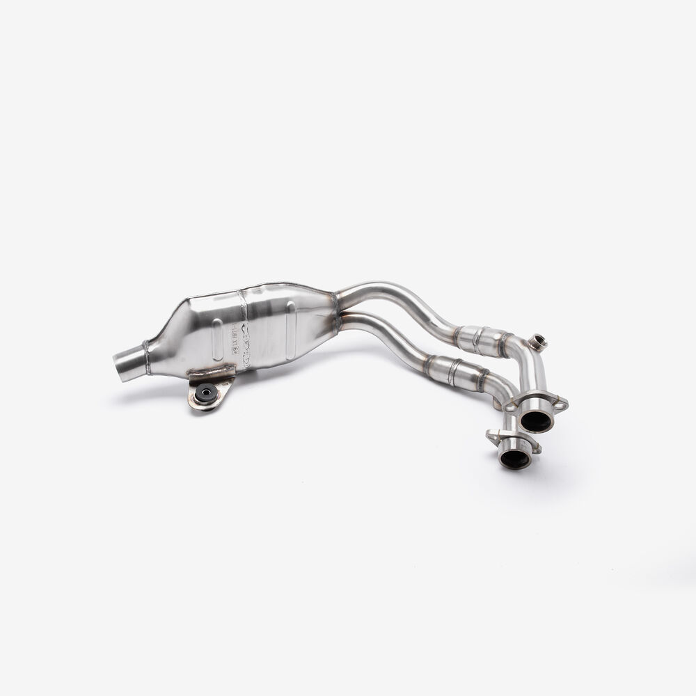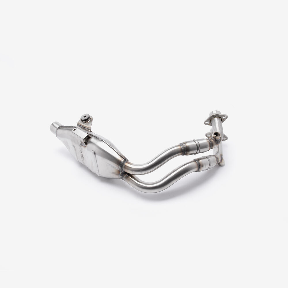 A motorcycle downpipe is a component of the exhaust system that connects the engine's exhaust manifold to the rest of the exhaust pipe. It channels exhaust gases away from the engine, improving airflow and overall engine performance. Downpipes are often modified for better power output and a more aggressive exhaust note.