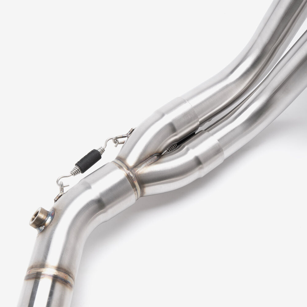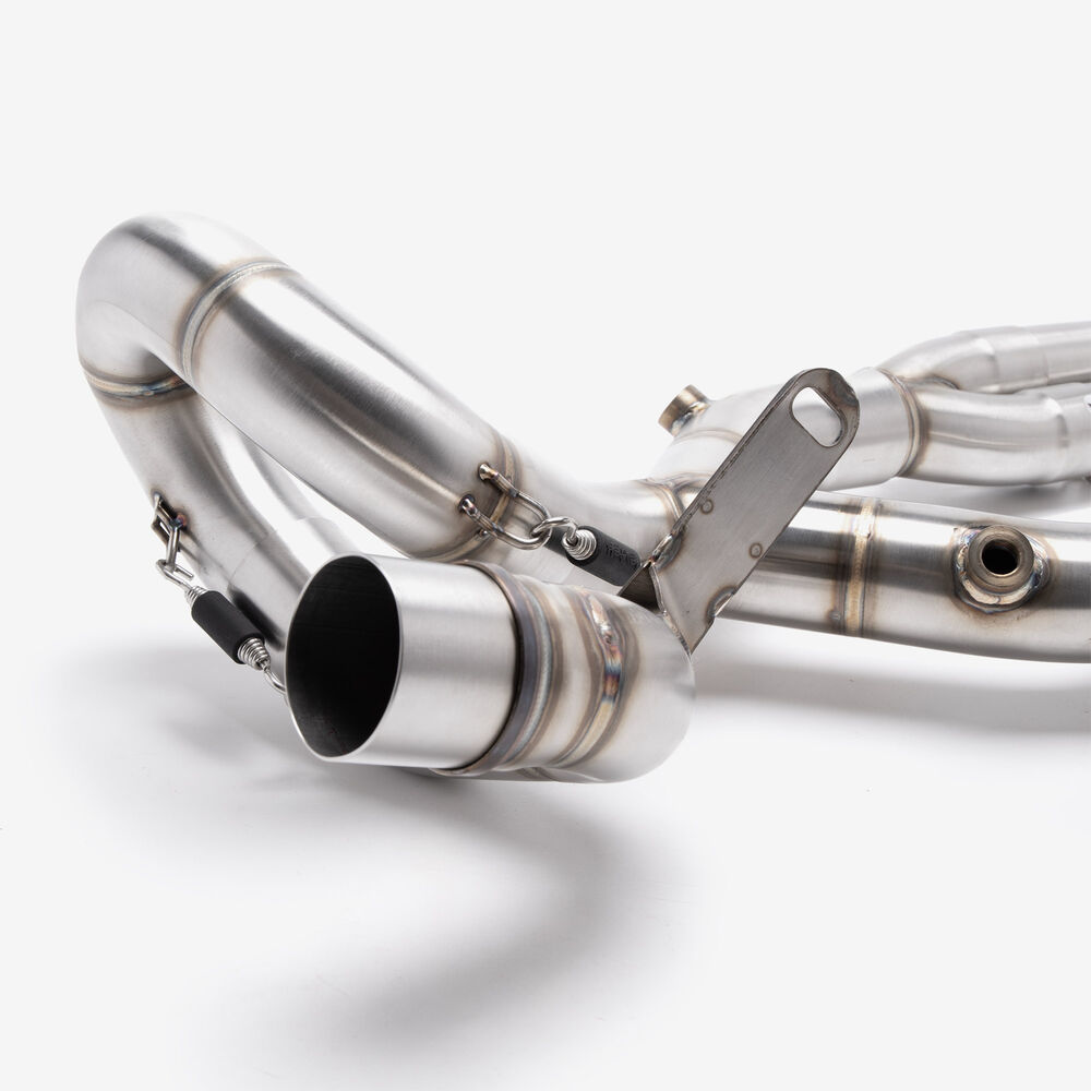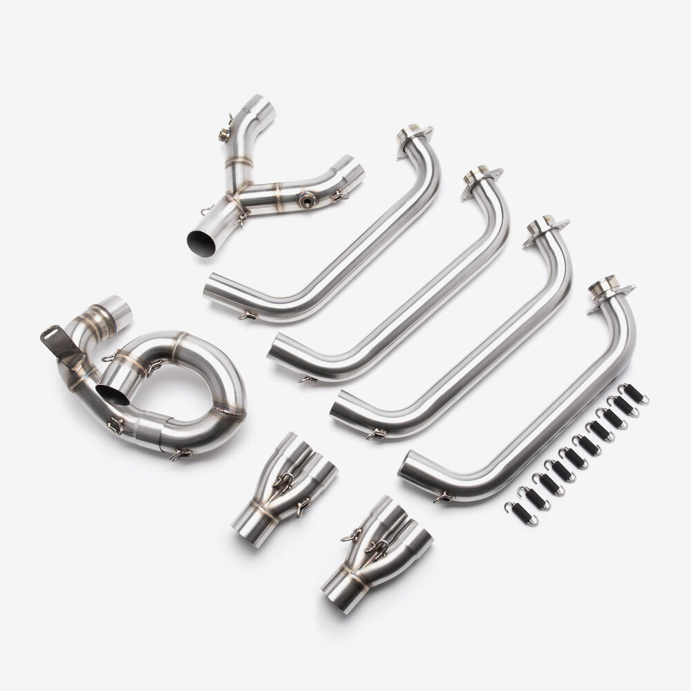 Designed with you in mind, our downpipes are a direct replacement for the original equipment (OE) part, allowing for a seamless installation process.The exit point of the downpipe aligns perfectly with the OE component, ensuring compatibility with the Lextek range of Slip-on kits, as well as the OE silencer and any other aftermarket silencers you may wish to use.This means you can easily customize your bikes exhaust system to suit your preferences, whether your looking for a particular sound, performance characteristic, or aesthetic.