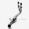 A motorcycle downpipe is a component of the exhaust system that connects the engine's exhaust manifold to the rest of the exhaust pipe. It channels exhaust gases away from the engine, improving airflow and overall engine performance. Downpipes are often modified for better power output and a more aggressive exhaust note.