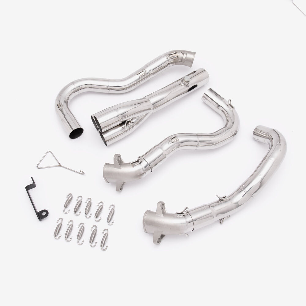 Designed with you in mind, our downpipes are a direct replacement for the original equipment (OE) part, allowing for a seamless installation process.The exit point of the downpipe aligns perfectly with the OE component, ensuring compatibility with the Lextek range of Slip-on kits, as well as the OE silencer and any other aftermarket silencers you may wish to use.This means you can easily customize your bikes exhaust system to suit your preferences, whether your looking for a particular sound, performance characteristic, or aesthetic.