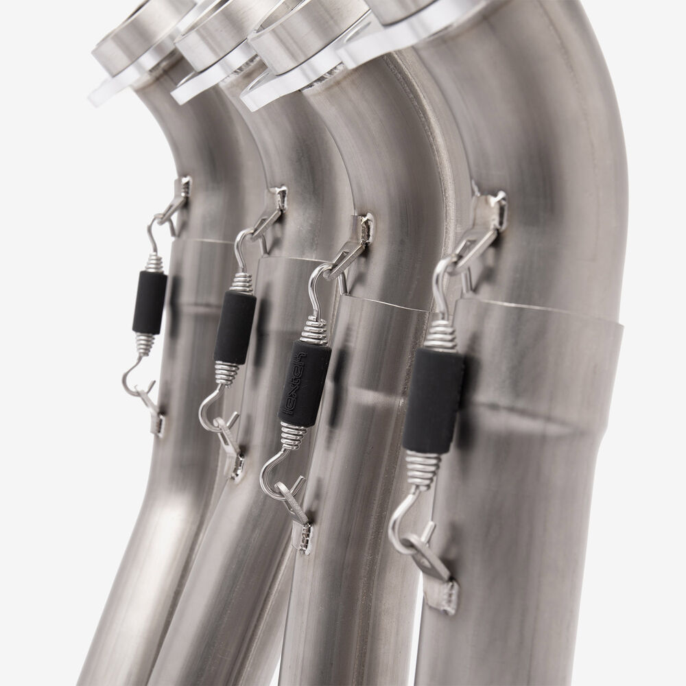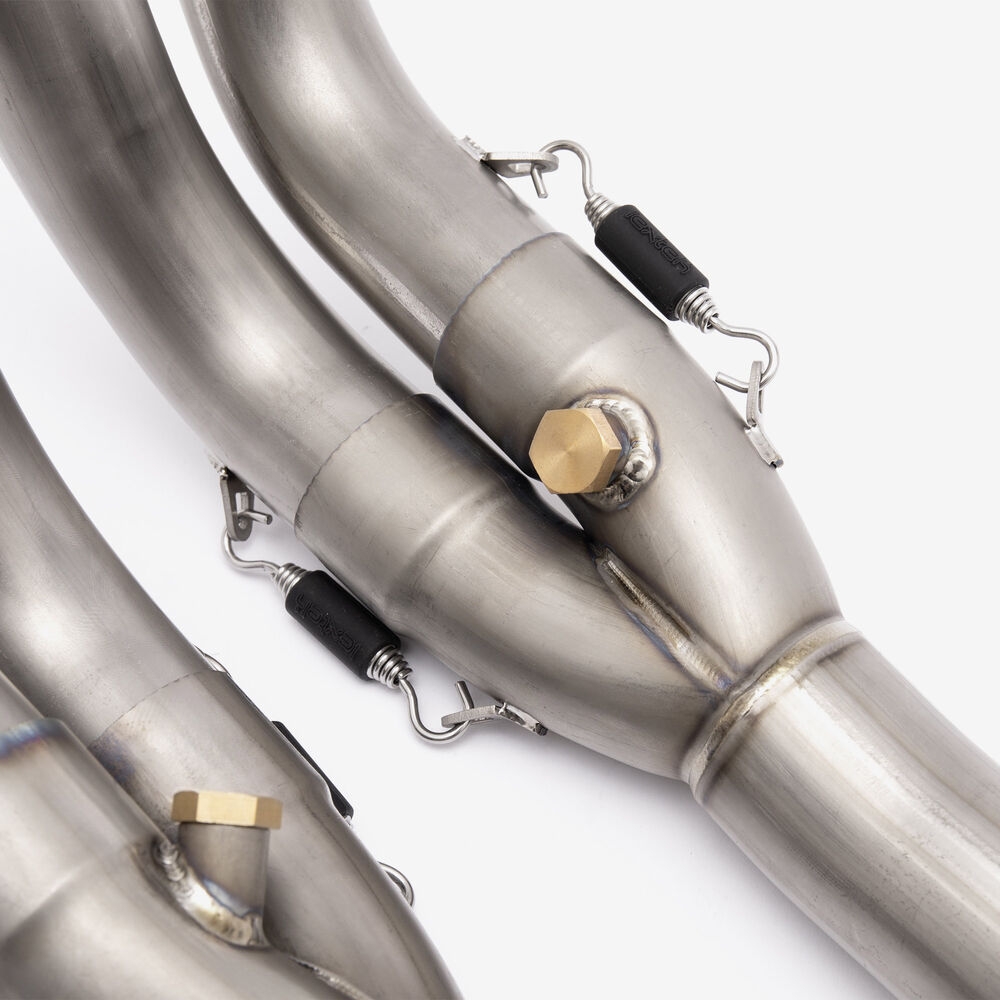A motorcycle downpipe is a component of the exhaust system that connects the engine's exhaust manifold to the rest of the exhaust pipe. It channels exhaust gases away from the engine, improving airflow and overall engine performance. Downpipes are often modified for better power output and a more aggressive exhaust note.