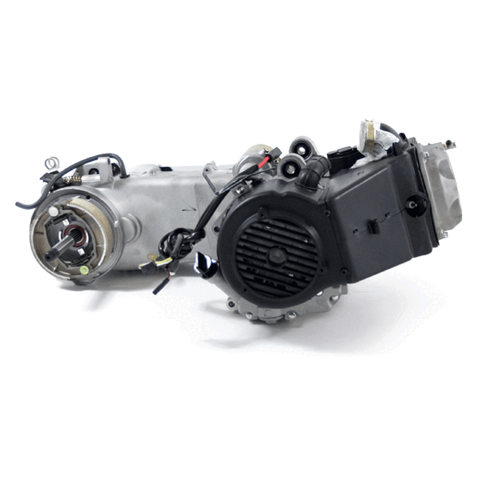 The complete engine in a motorcycle encompasses all internal and external components necessary for operation, including the engine block, cylinders, pistons, crankshaft, camshaft.