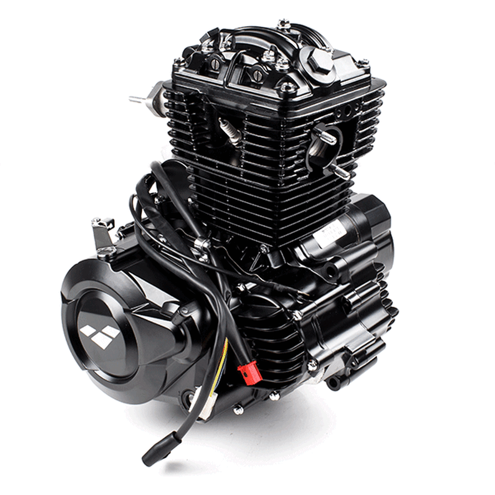The complete engine in a motorcycle encompasses all internal and external components necessary for operation, including the engine block, cylinders, pistons, crankshaft, camshaft.