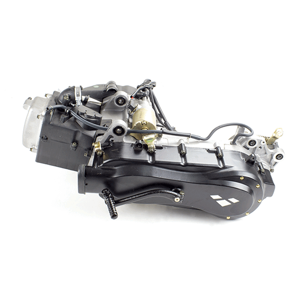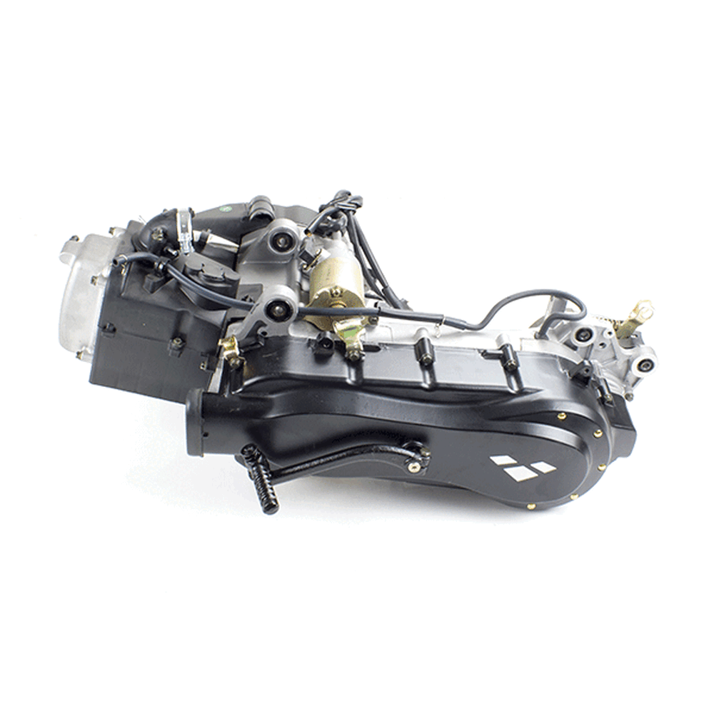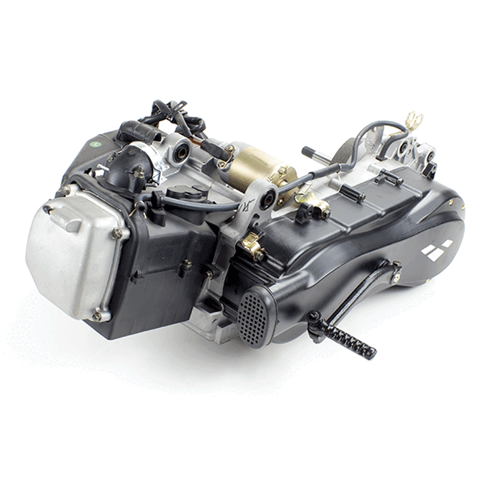 The complete engine in a motorcycle encompasses all internal and external components necessary for operation, including the engine block, cylinders, pistons, crankshaft, camshaft.