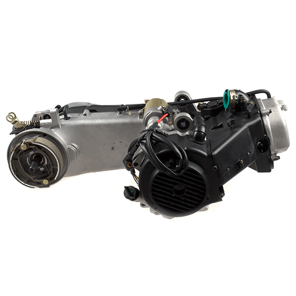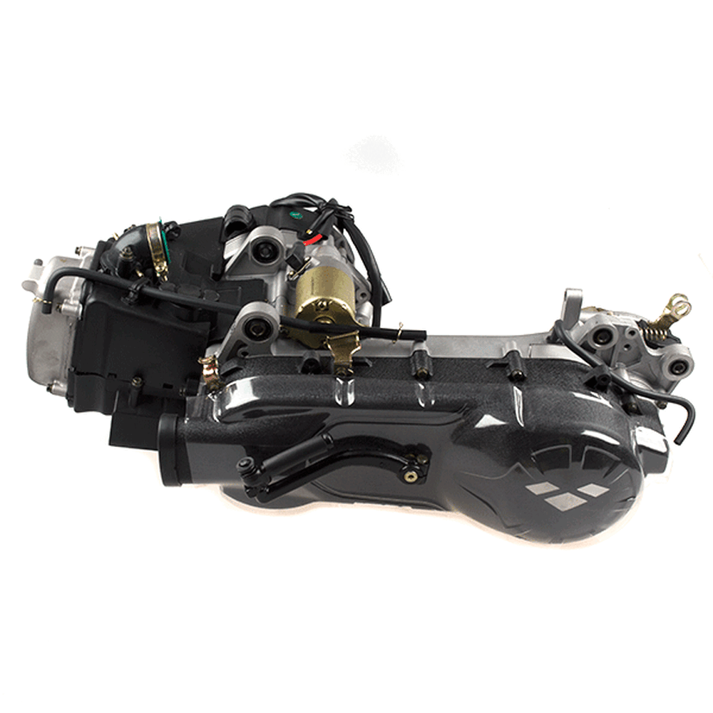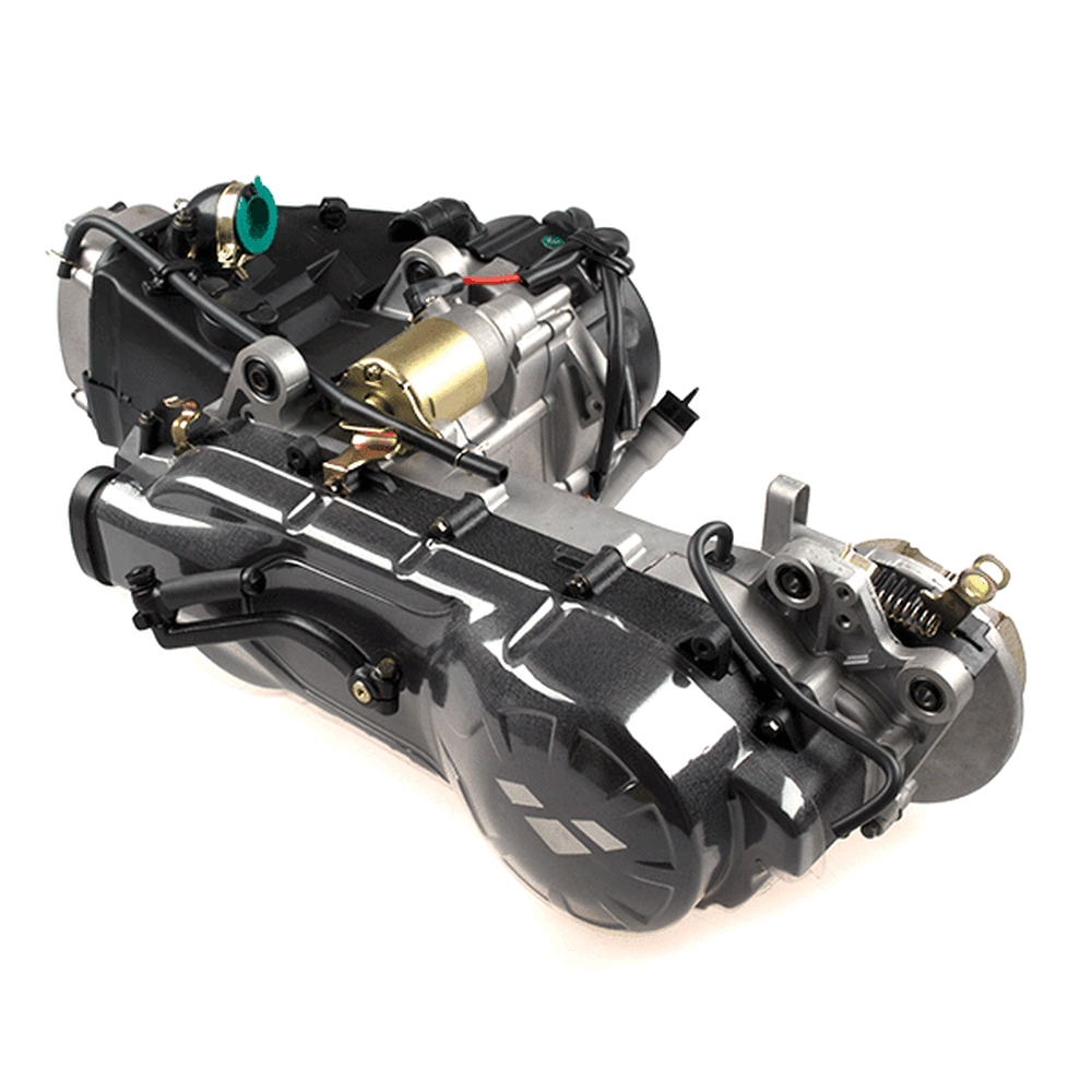 The complete engine in a motorcycle encompasses all internal and external components necessary for operation, including the engine block, cylinders, pistons, crankshaft, camshaft.