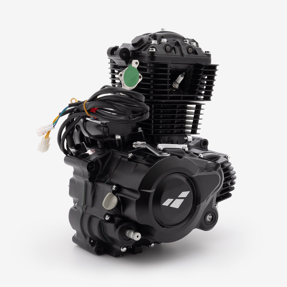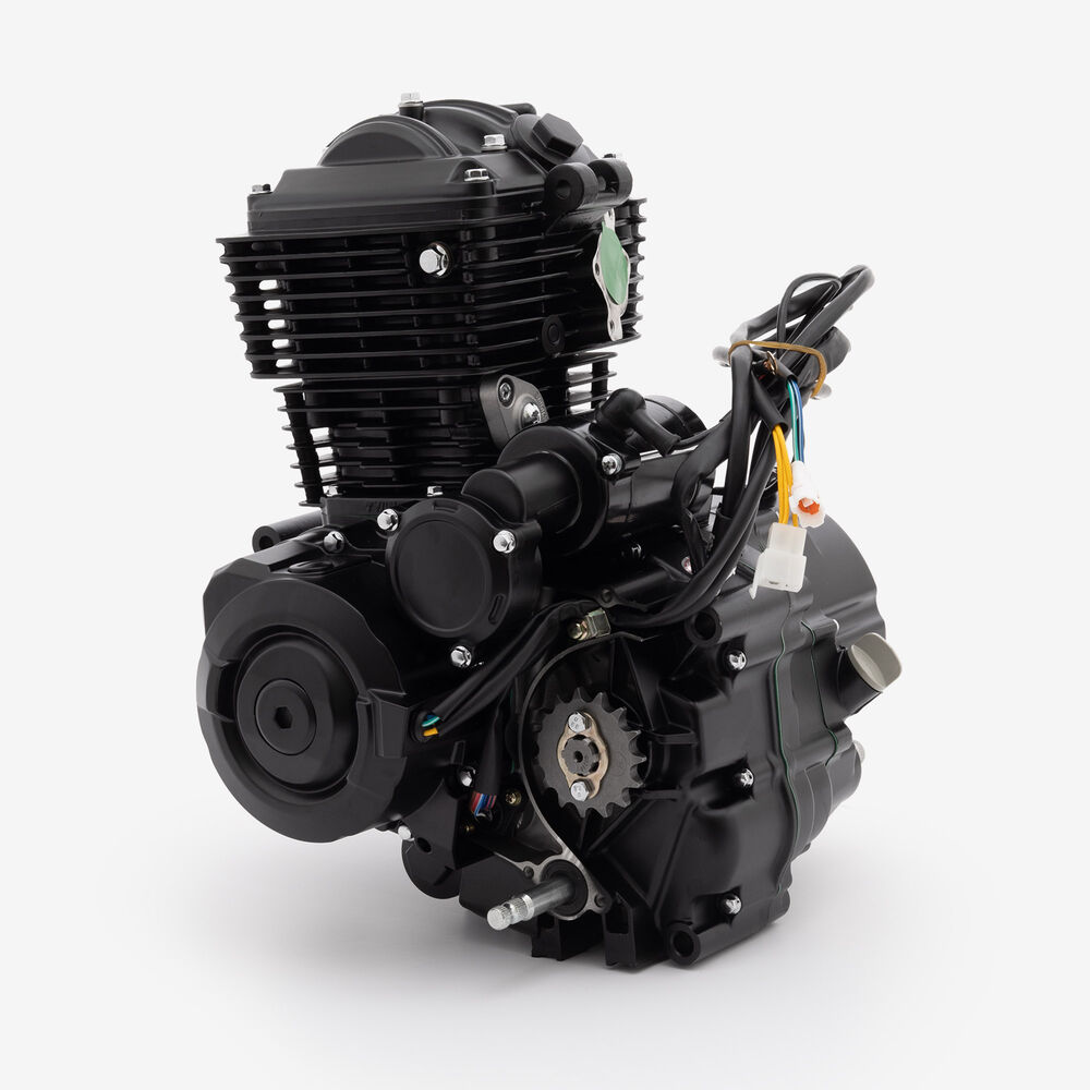 The complete engine in a motorcycle encompasses all internal and external components necessary for operation, including the engine block, cylinders, pistons, crankshaft, camshaft.