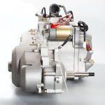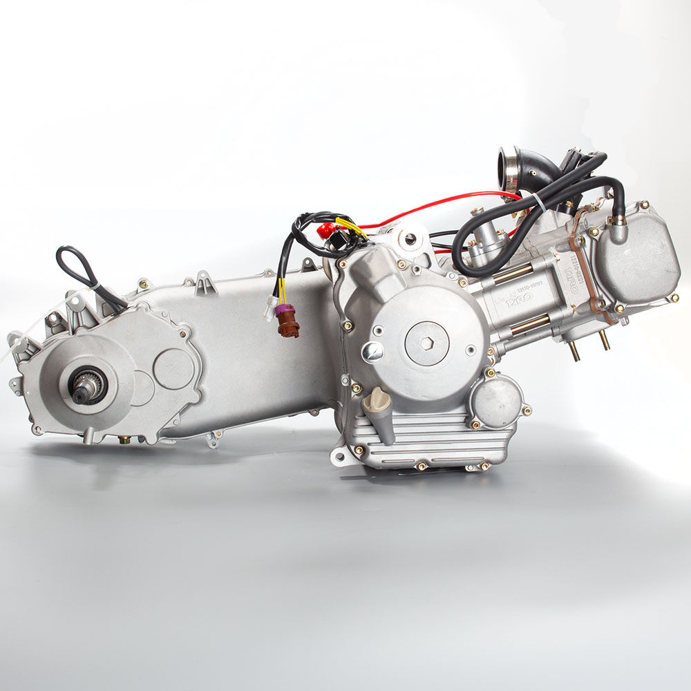 The complete engine in a motorcycle encompasses all internal and external components necessary for operation, including the engine block, cylinders, pistons, crankshaft, camshaft.