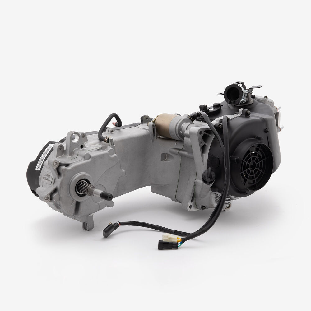 The complete engine in a motorcycle encompasses all internal and external components necessary for operation, including the engine block, cylinders, pistons, crankshaft, camshaft.