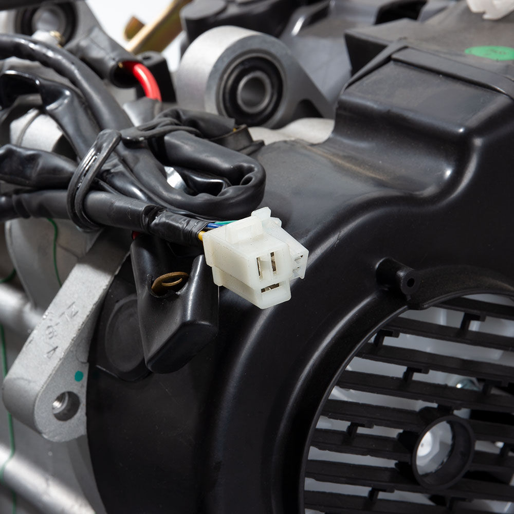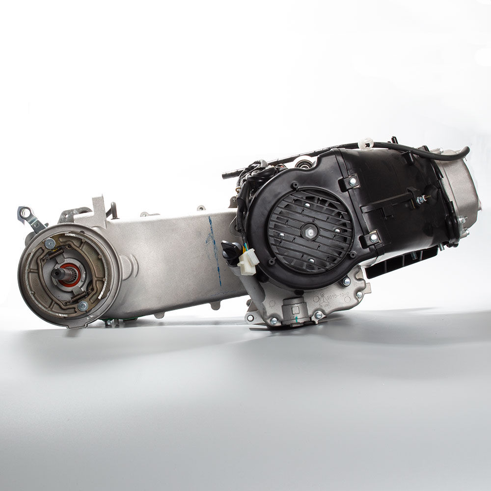 The complete engine in a motorcycle encompasses all internal and external components necessary for operation, including the engine block, cylinders, pistons, crankshaft, camshaft.