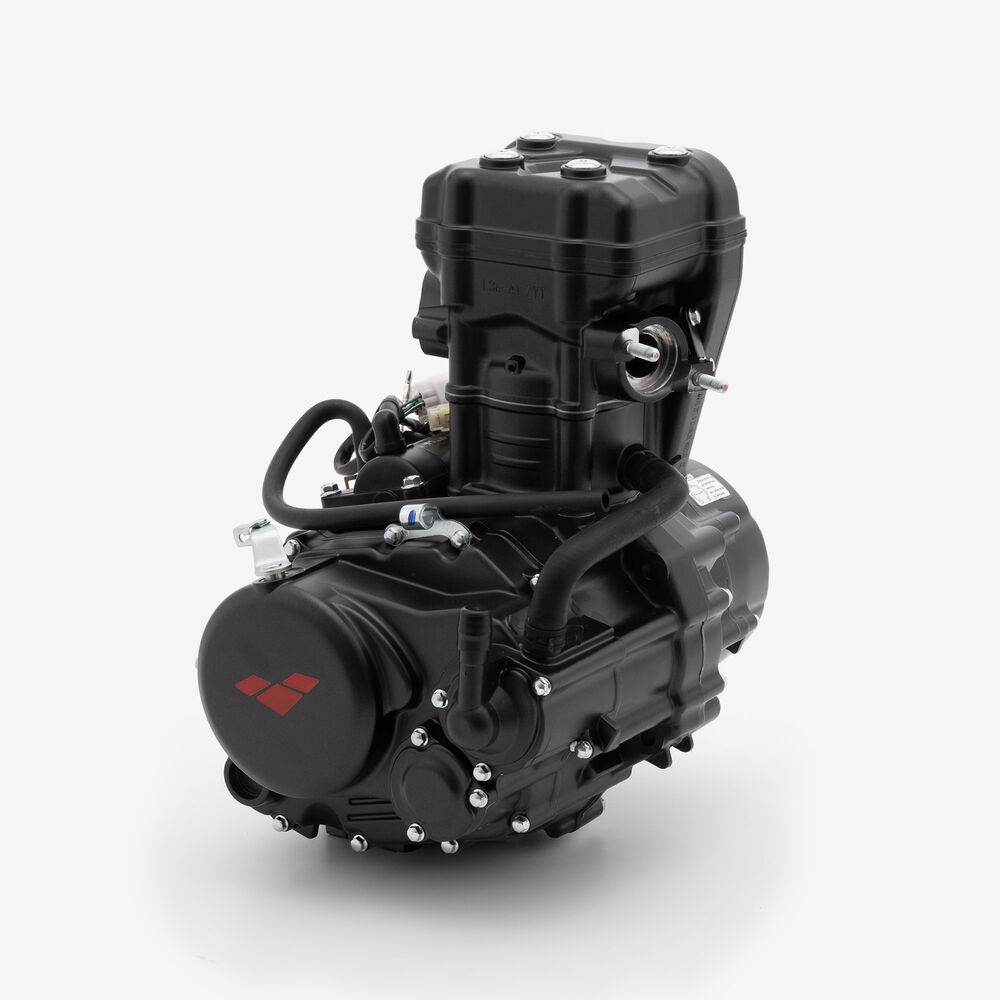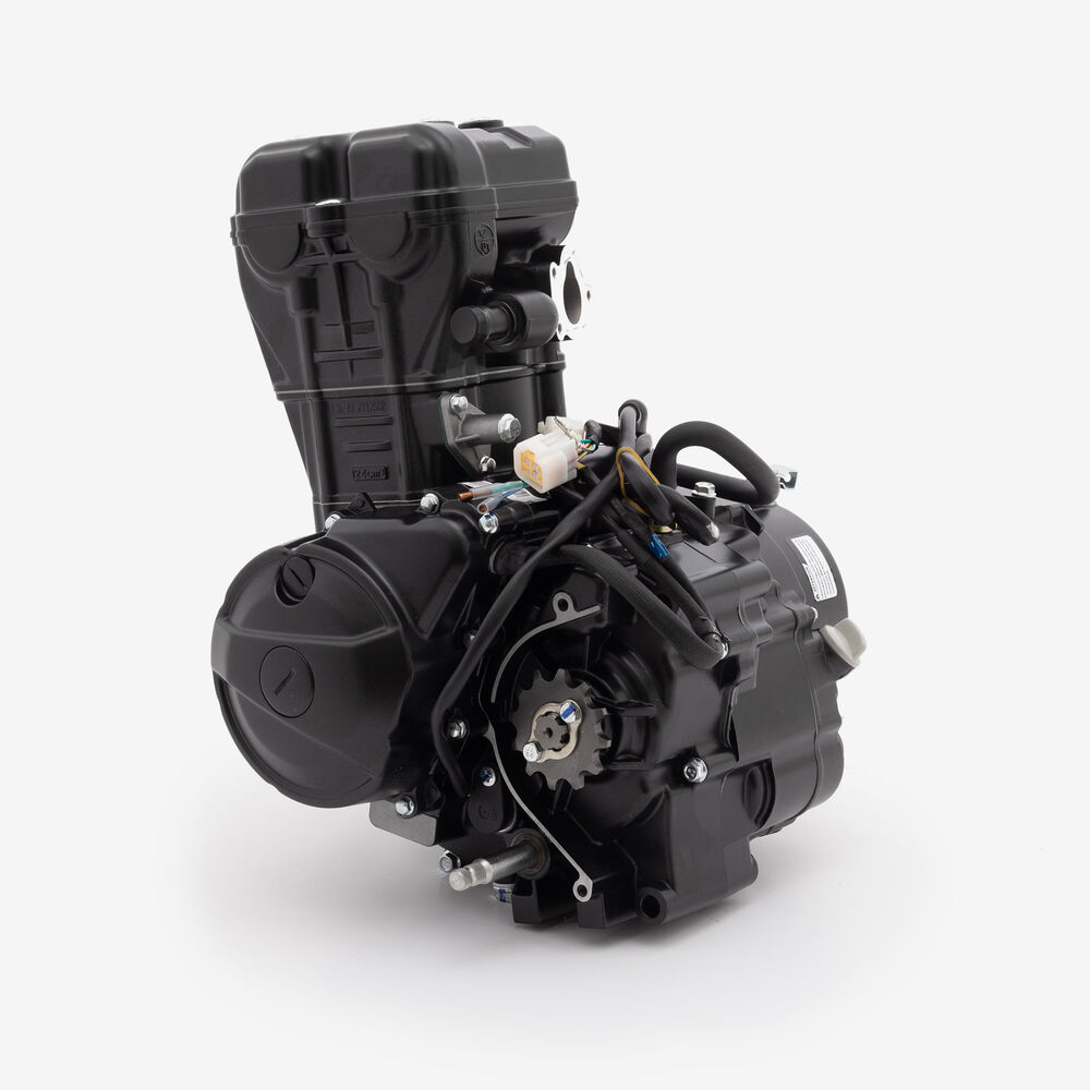 The complete engine in a motorcycle encompasses all internal and external components necessary for operation, including the engine block, cylinders, pistons, crankshaft, camshaft.
