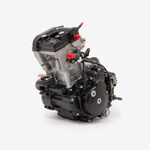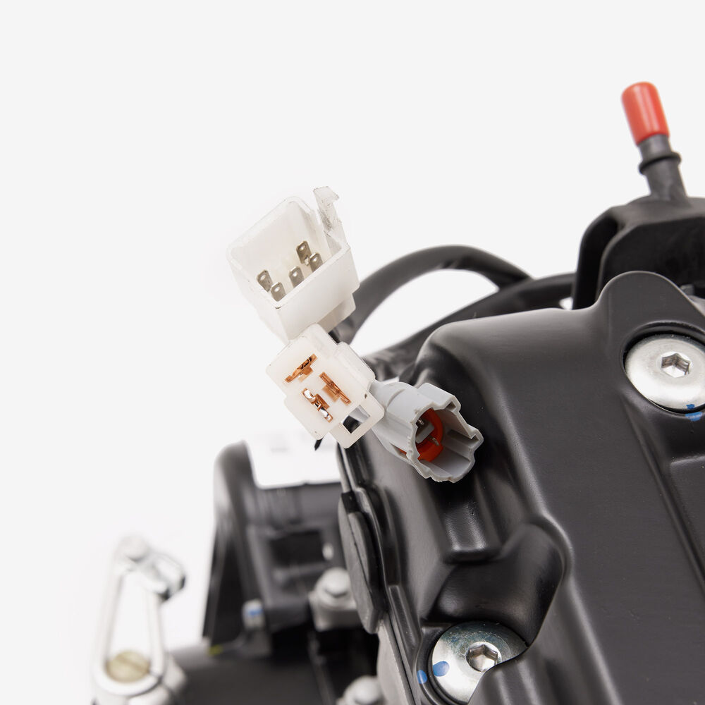 The complete engine in a motorcycle encompasses all internal and external components necessary for operation, including the engine block, cylinders, pistons, crankshaft, camshaft.