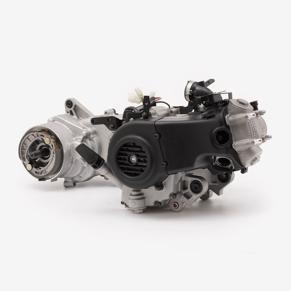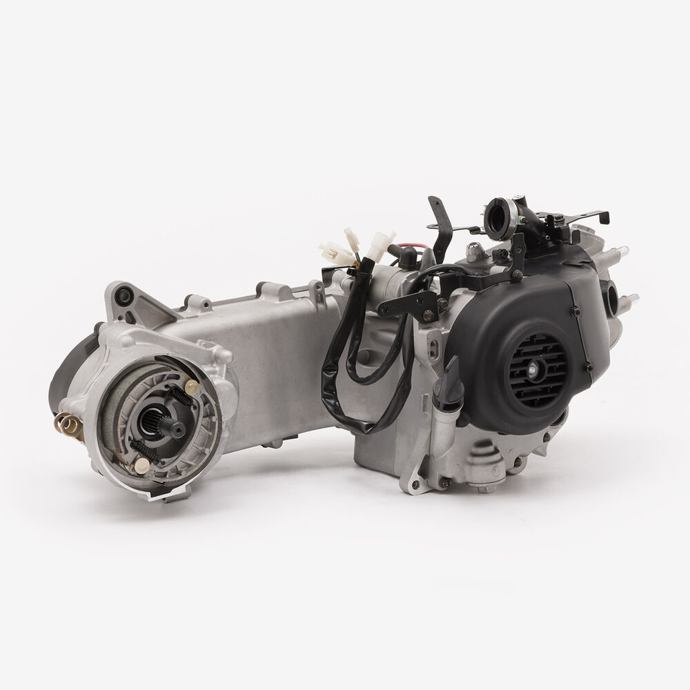 The complete engine in a motorcycle encompasses all internal and external components necessary for operation, including the engine block, cylinders, pistons, crankshaft, camshaft.