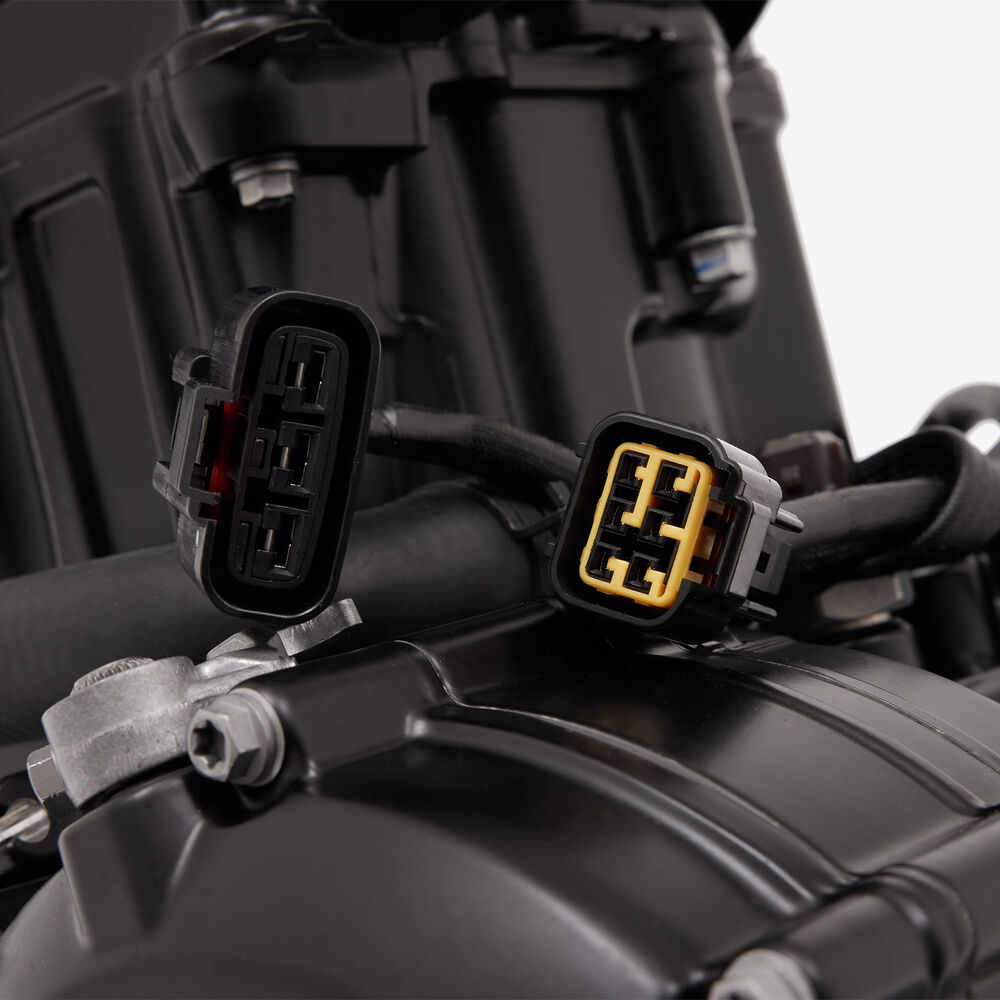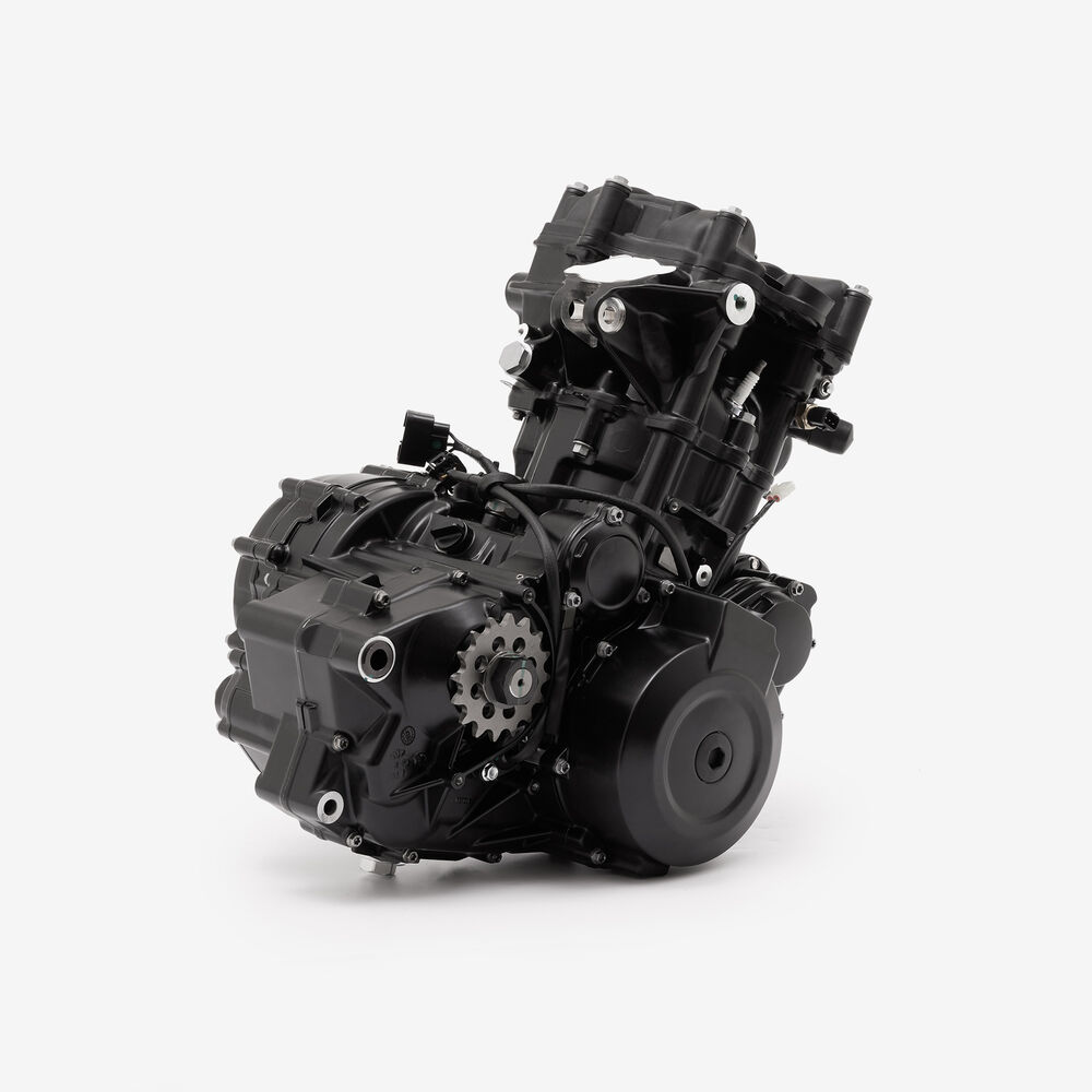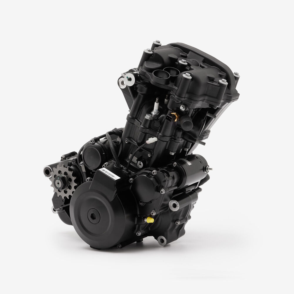 The complete engine in a motorcycle encompasses all internal and external components necessary for operation, including the engine block, cylinders, pistons, crankshaft, camshaft.