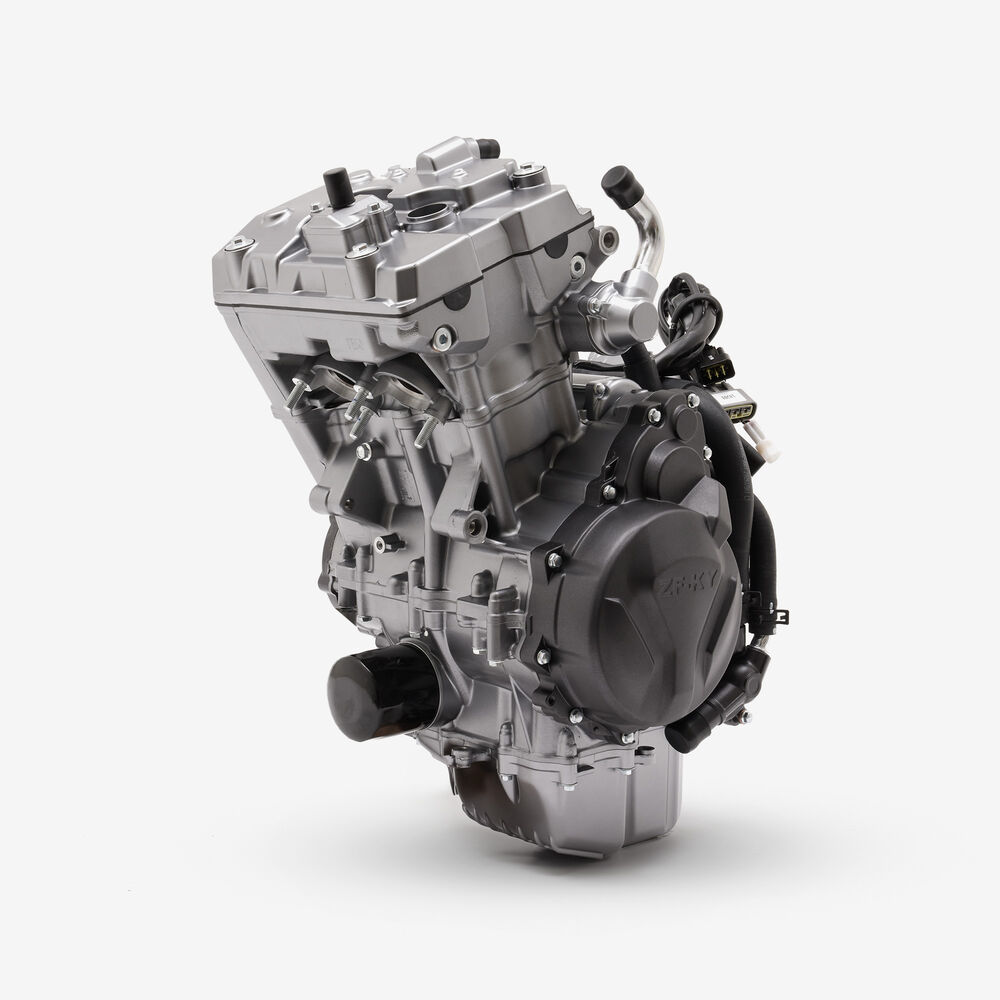 The complete engine in a motorcycle encompasses all internal and external components necessary for operation, including the engine block, cylinders, pistons, crankshaft, camshaft.
