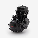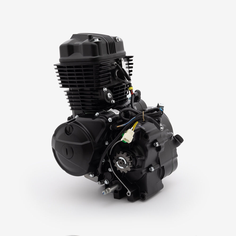 The complete engine in a motorcycle encompasses all internal and external components necessary for operation, including the engine block, cylinders, pistons, crankshaft, camshaft.