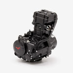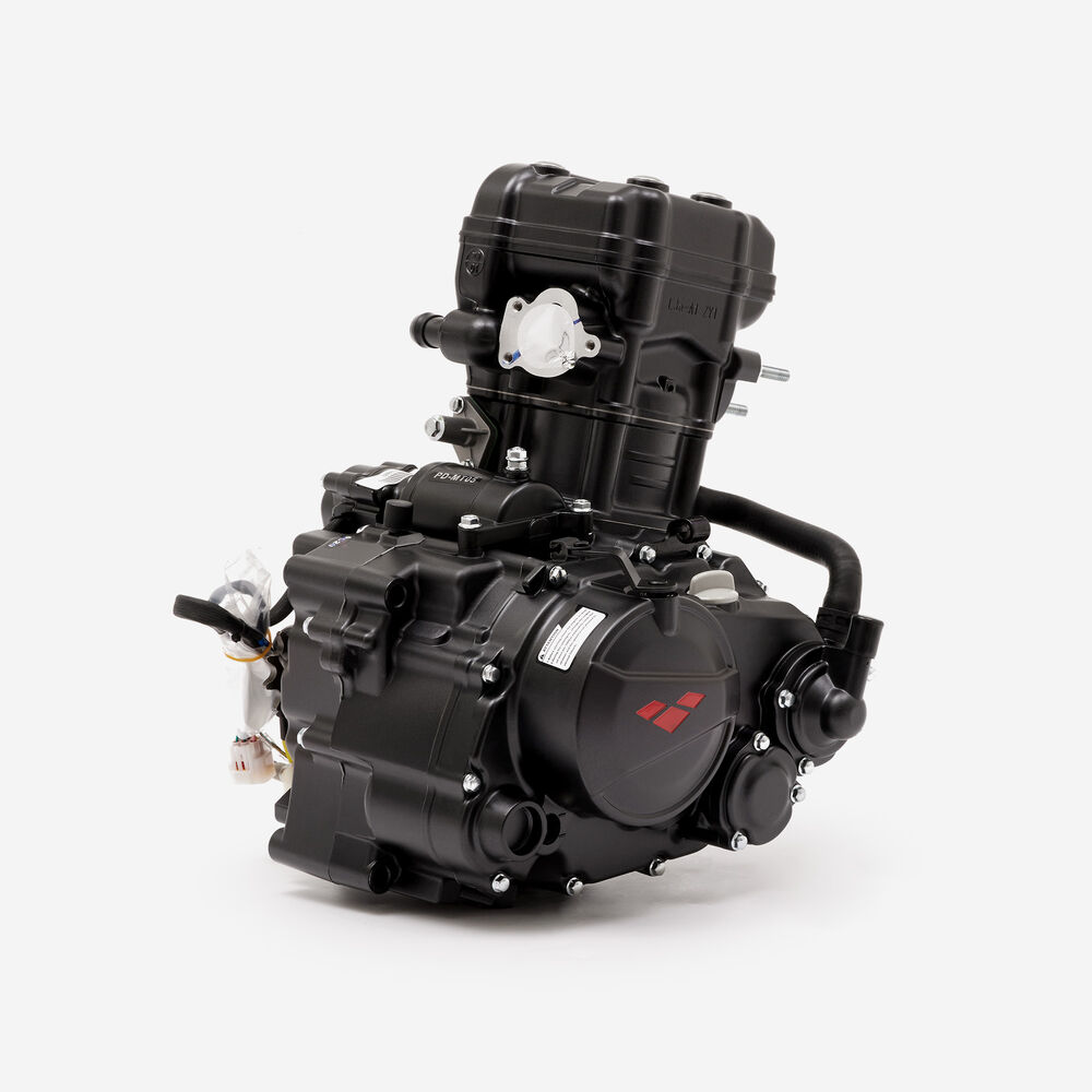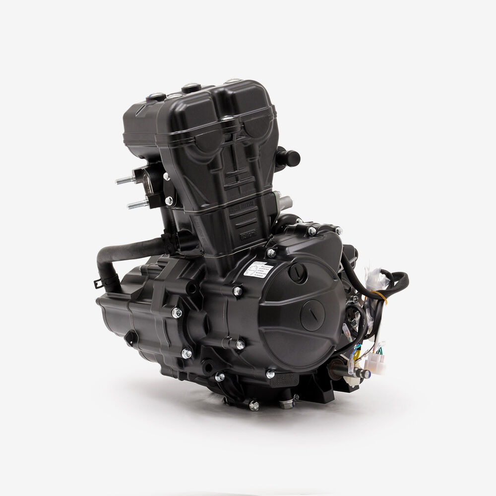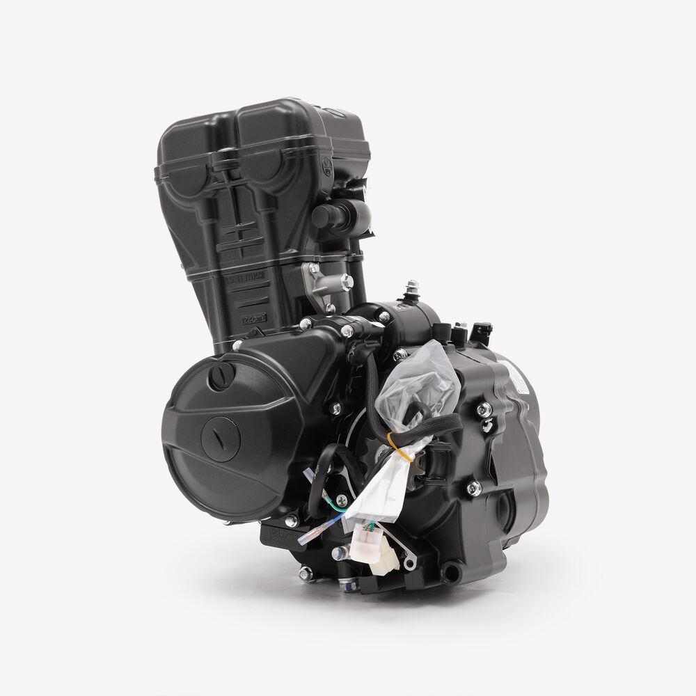 The complete engine in a motorcycle encompasses all internal and external components necessary for operation, including the engine block, cylinders, pistons, crankshaft, camshaft.