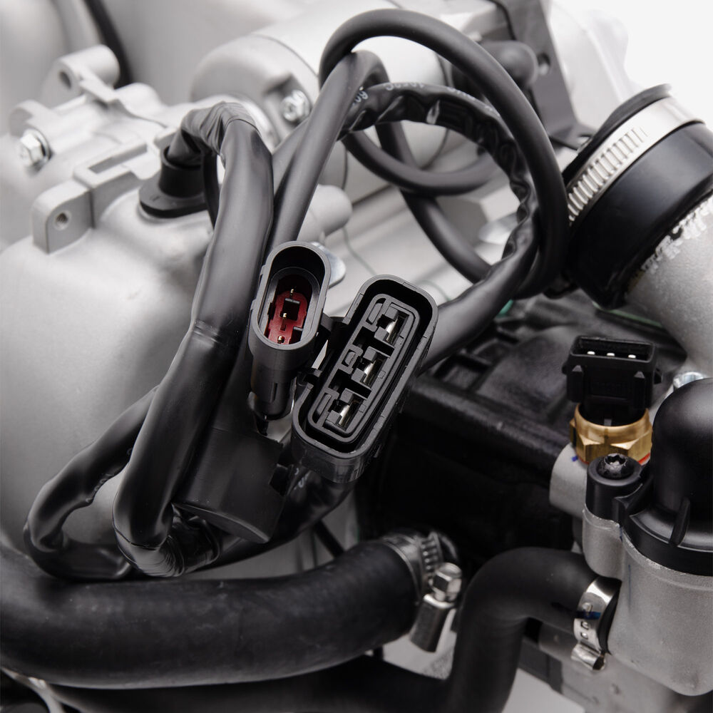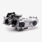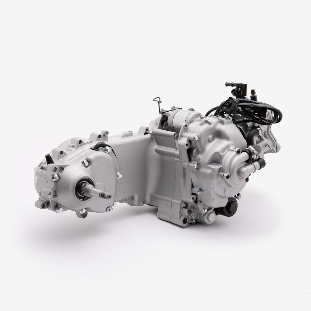 The complete engine in a motorcycle encompasses all internal and external components necessary for operation, including the engine block, cylinders, pistons, crankshaft, camshaft.