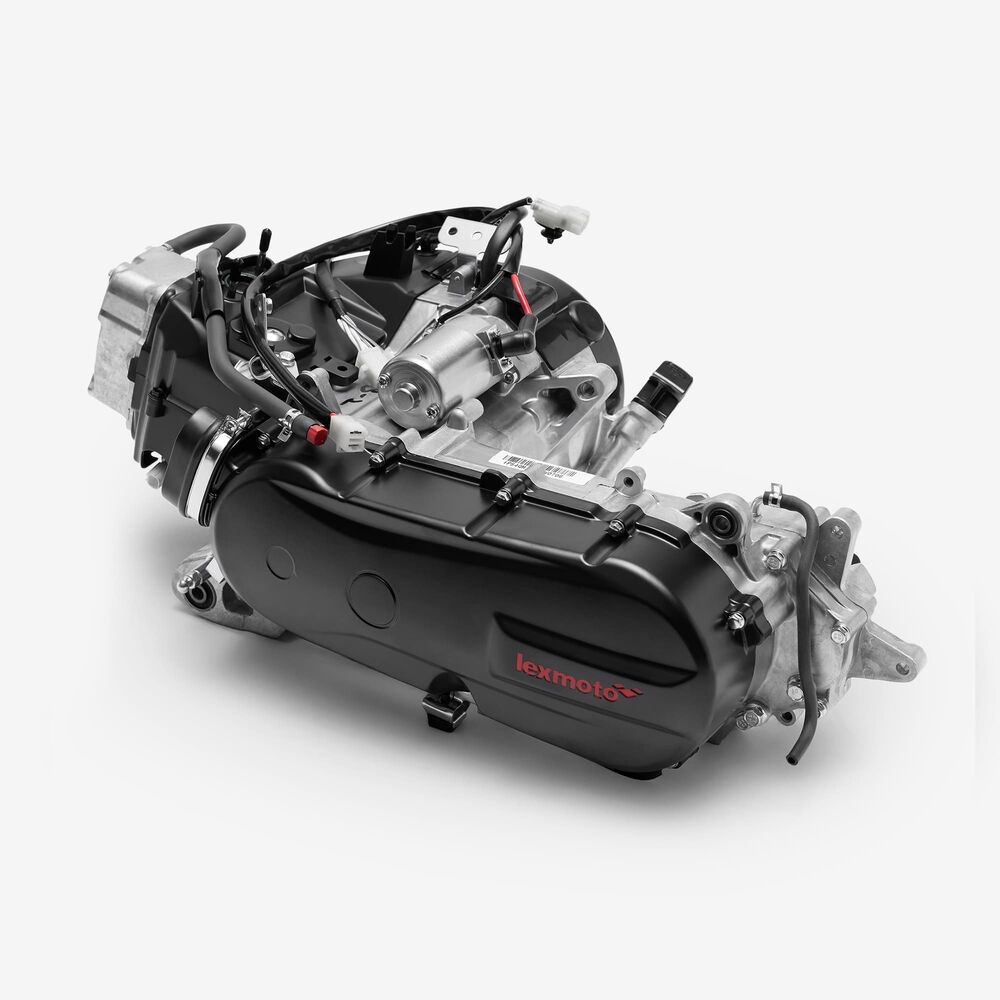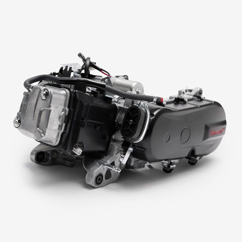 The complete engine in a motorcycle encompasses all internal and external components necessary for operation, including the engine block, cylinders, pistons, crankshaft, camshaft.