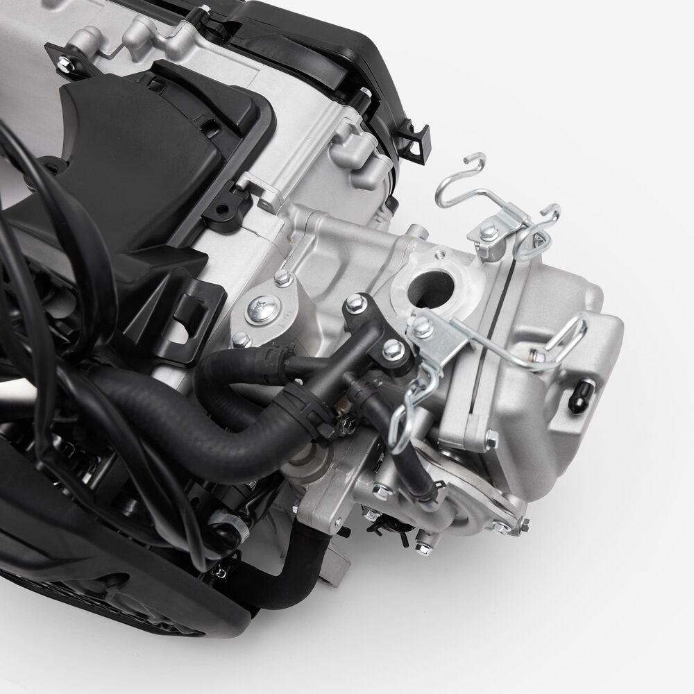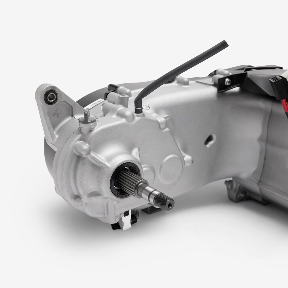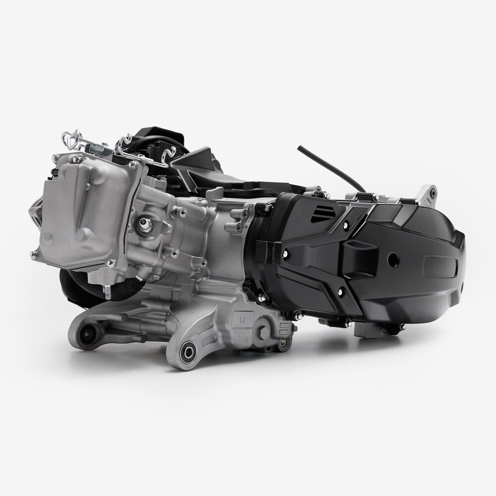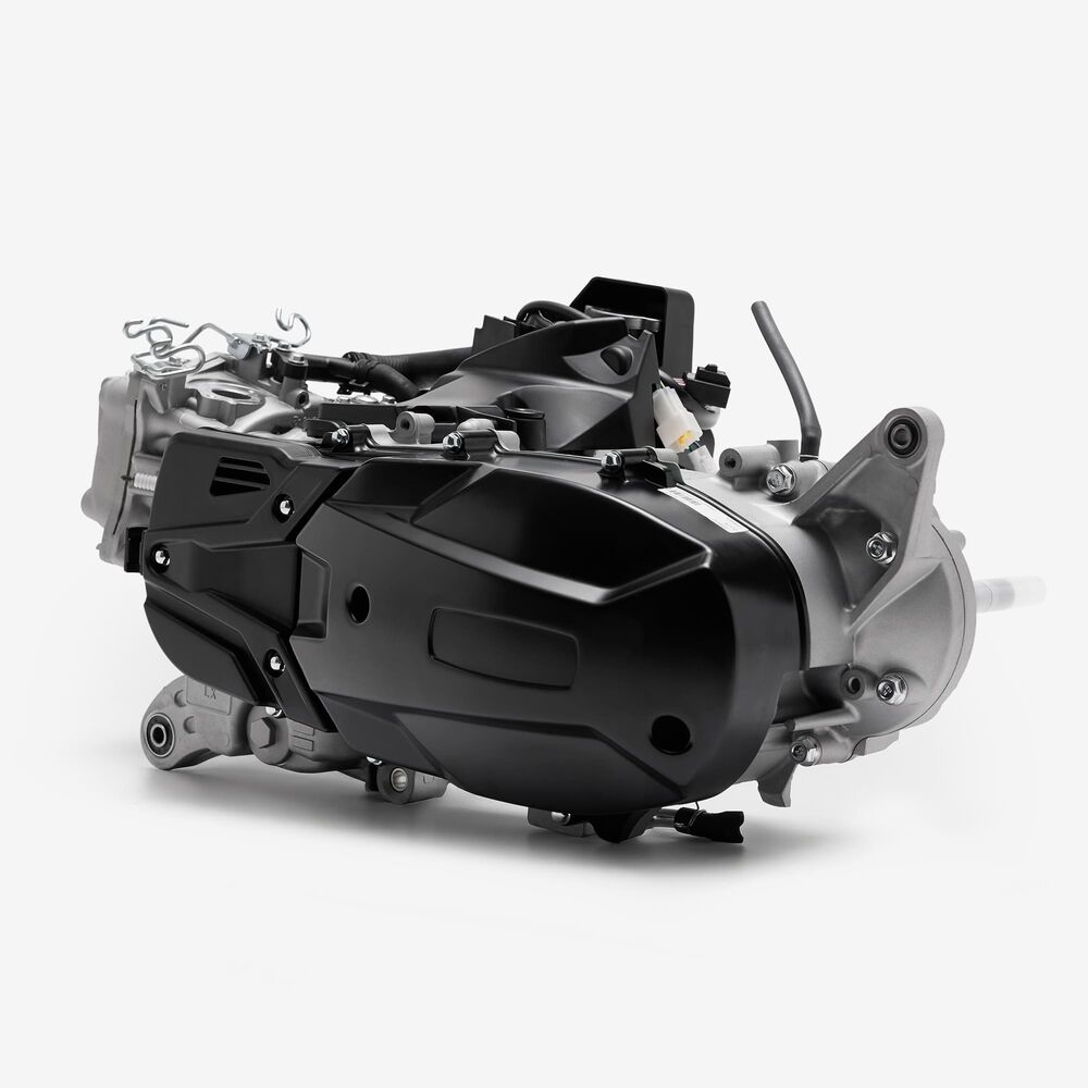 The complete engine in a motorcycle encompasses all internal and external components necessary for operation, including the engine block, cylinders, pistons, crankshaft, camshaft.