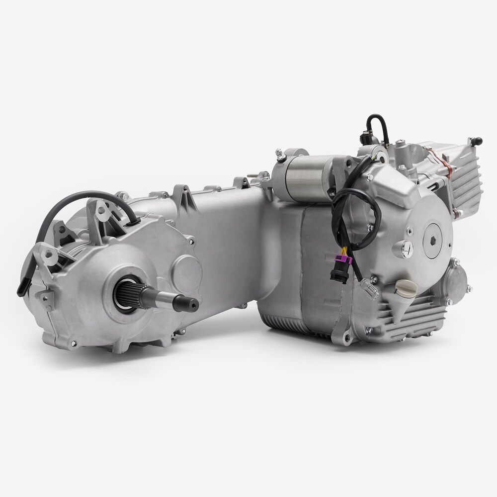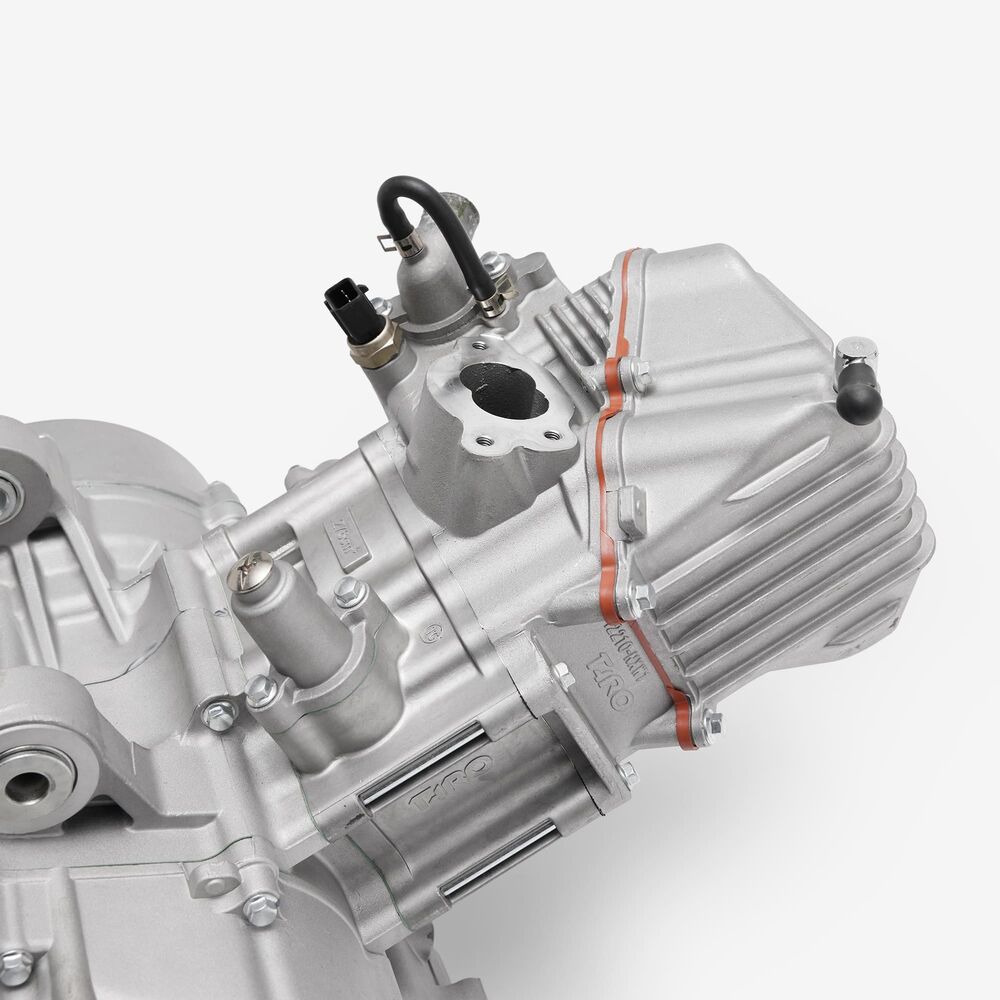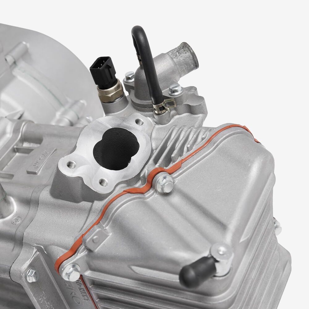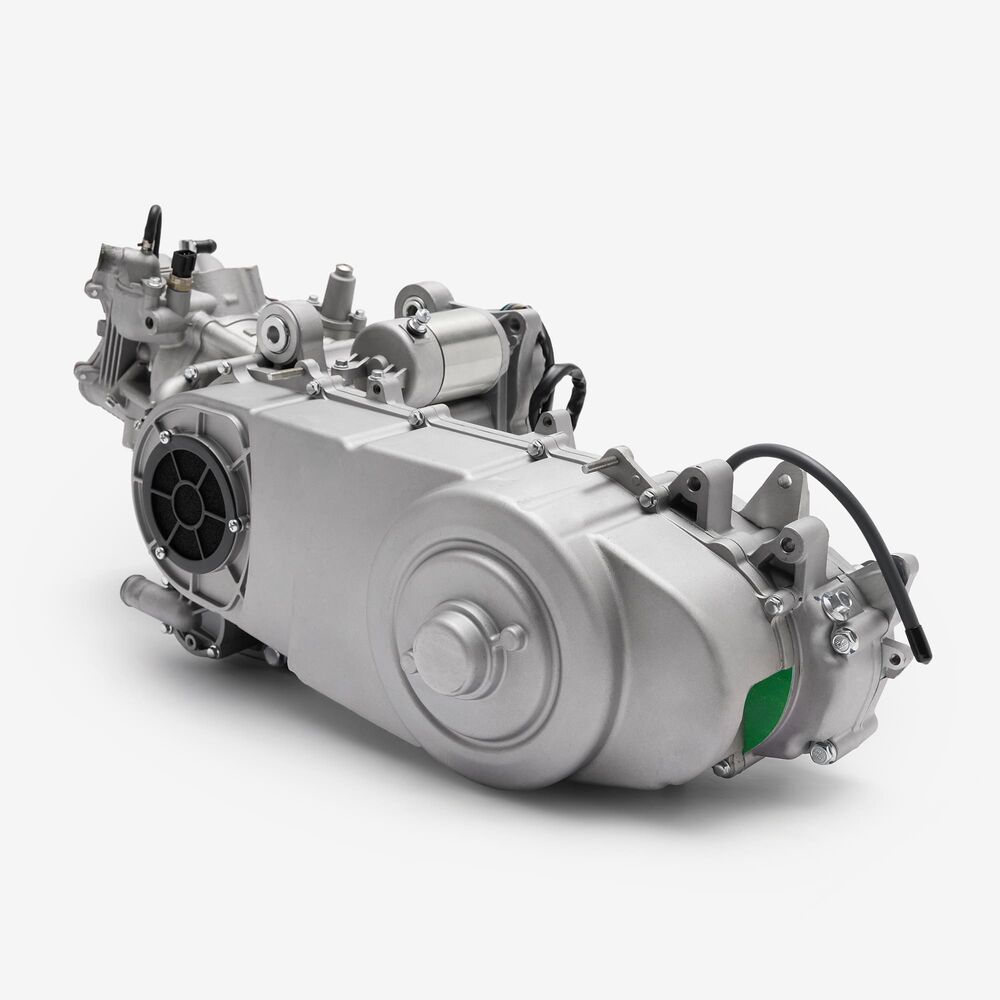 The complete engine in a motorcycle encompasses all internal and external components necessary for operation, including the engine block, cylinders, pistons, crankshaft, camshaft.