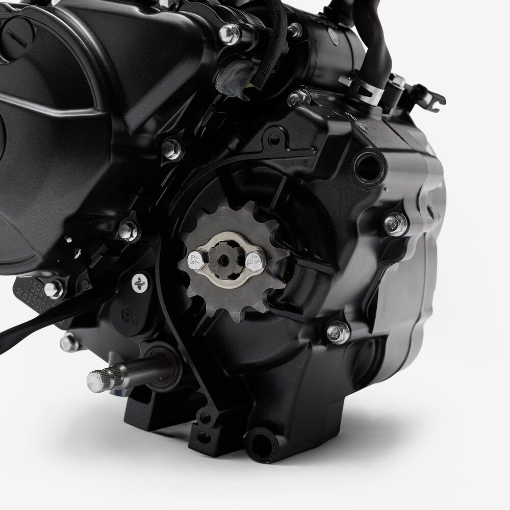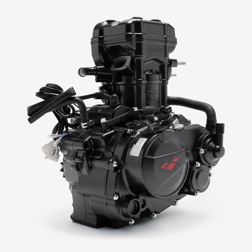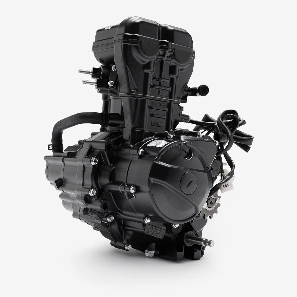 The complete engine in a motorcycle encompasses all internal and external components necessary for operation, including the engine block, cylinders, pistons, crankshaft, camshaft.