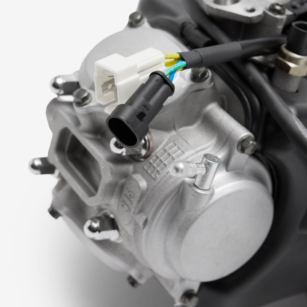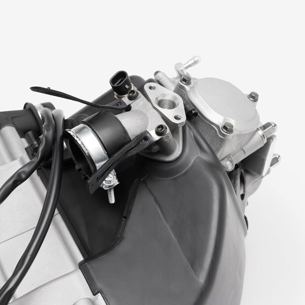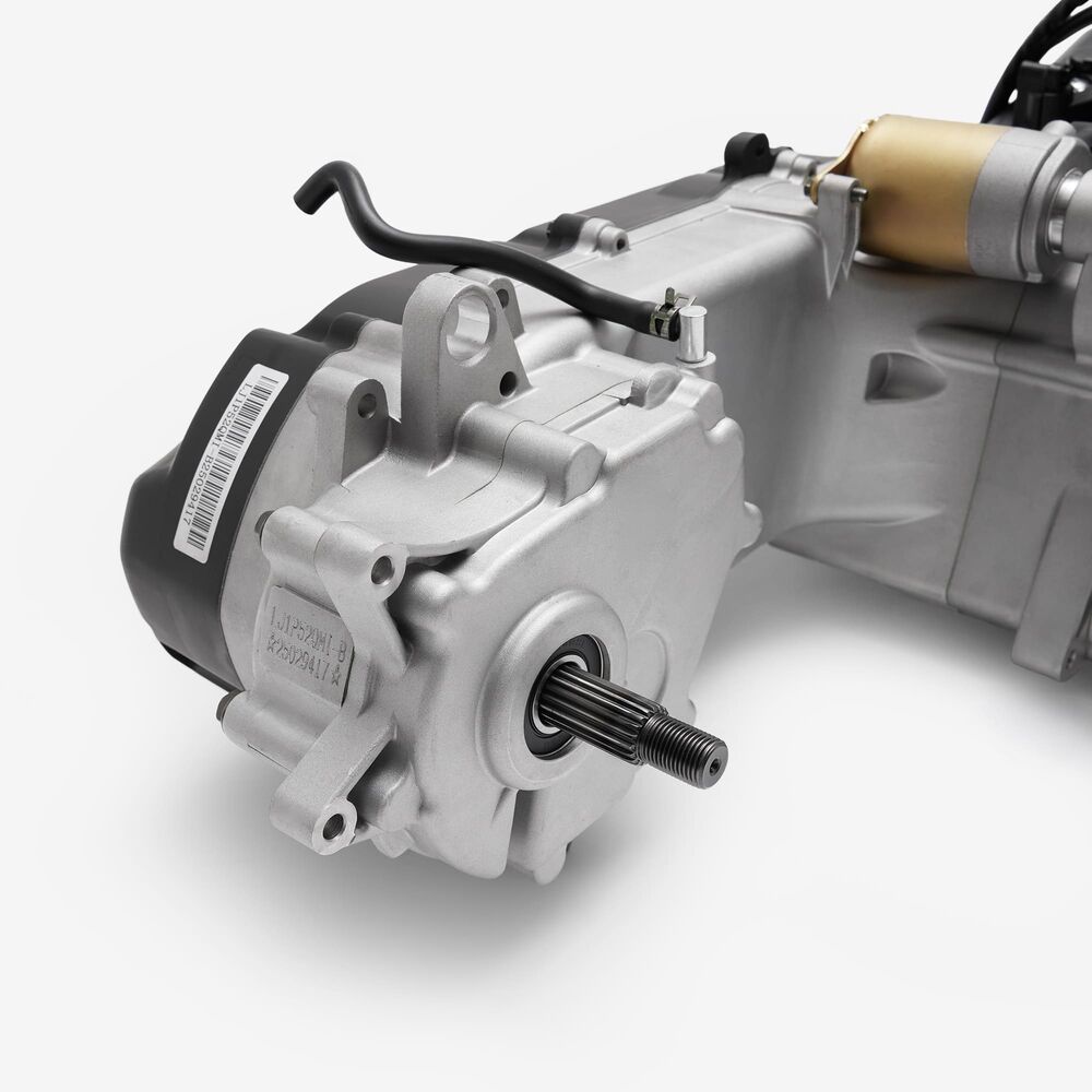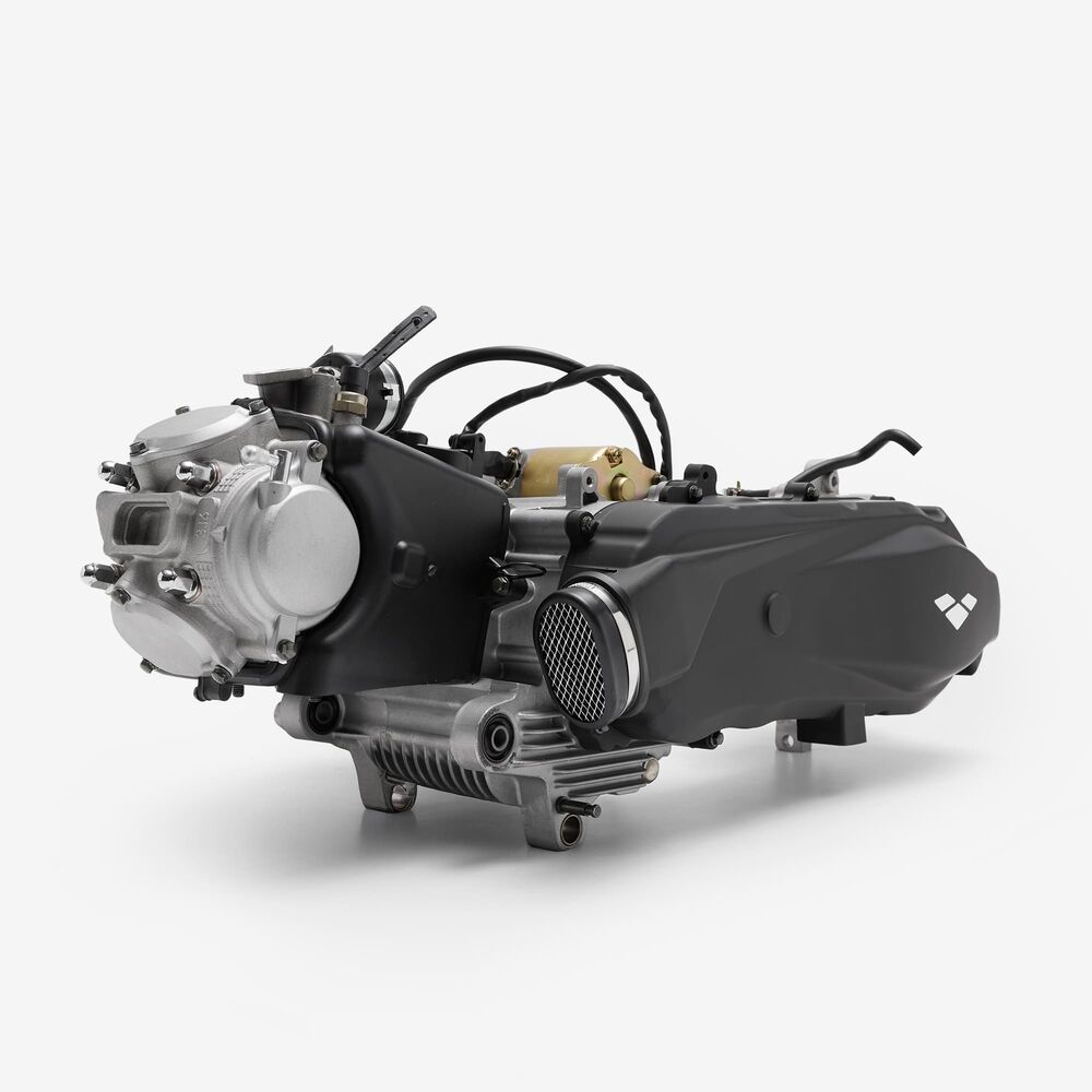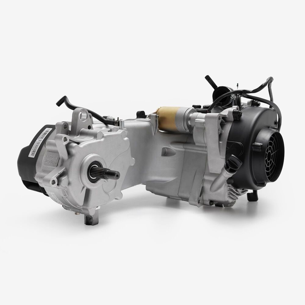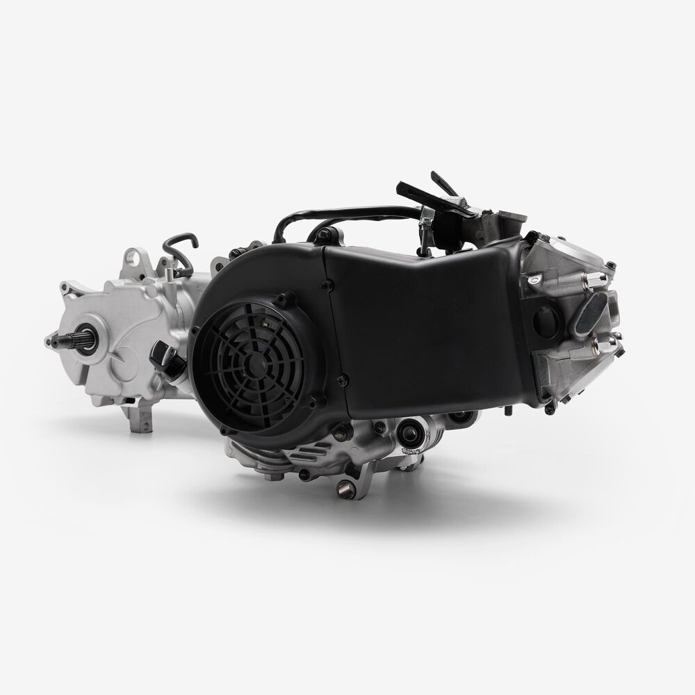 The complete engine in a motorcycle encompasses all internal and external components necessary for operation, including the engine block, cylinders, pistons, crankshaft, camshaft.
