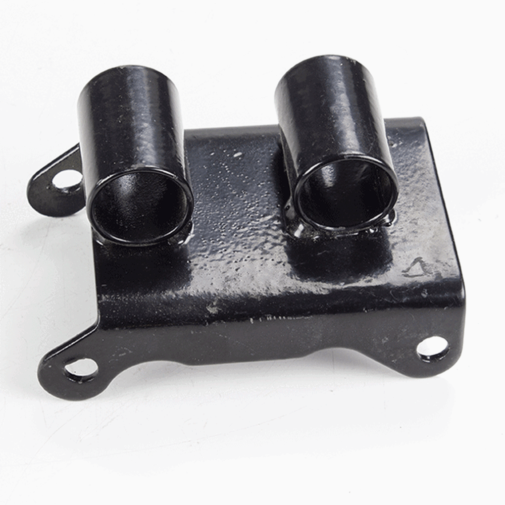 The engine bracket in a motorcycle securely mounts the engine to the frame, providing stability and support while ensuring proper alignment and reducing vibrations during operation.