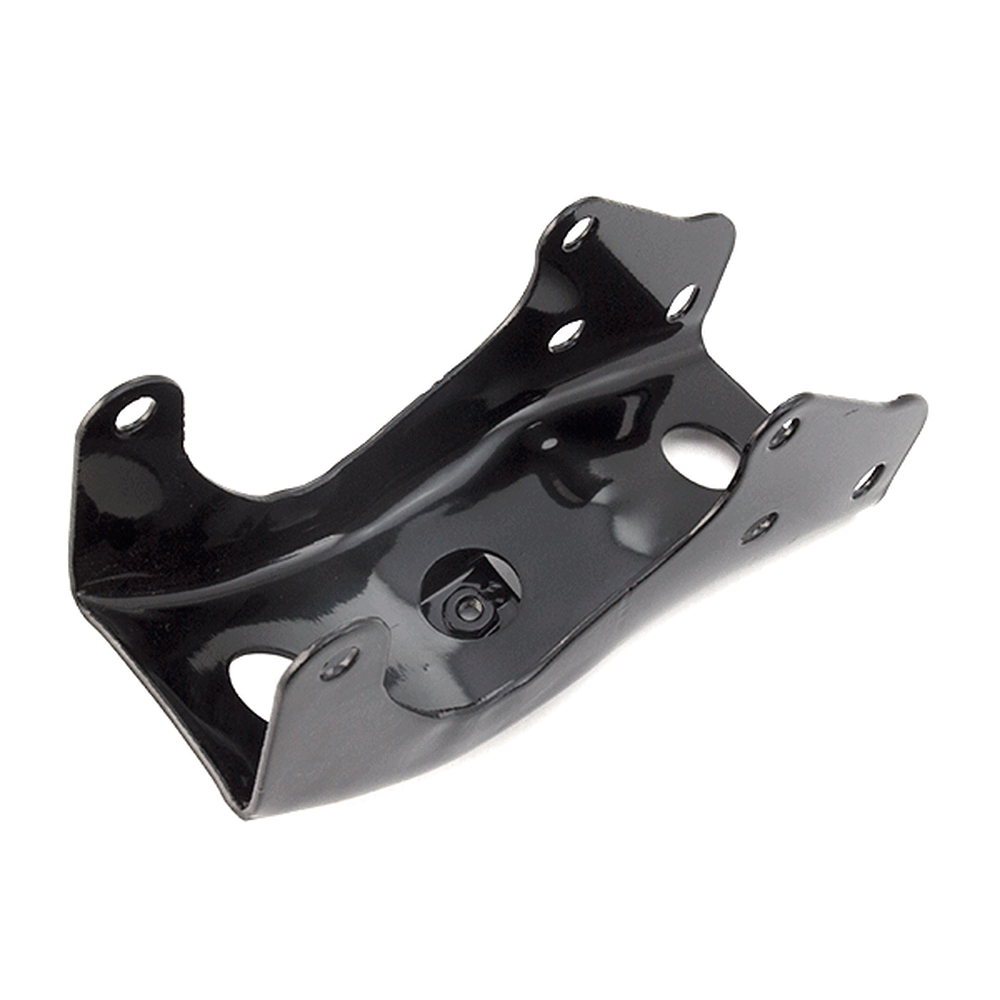 The engine bracket in a motorcycle securely mounts the engine to the frame, providing stability and support while ensuring proper alignment and reducing vibrations during operation.