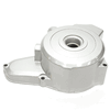 The left engine casing in a motorcycle encloses and protects the engine's internal components on the left side, ensuring structural integrity and safeguarding against dirt, debris, and damage.