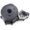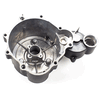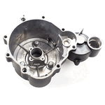 The left engine casing in a motorcycle encloses and protects the engine's internal components on the left side, ensuring structural integrity and safeguarding against dirt, debris, and damage.