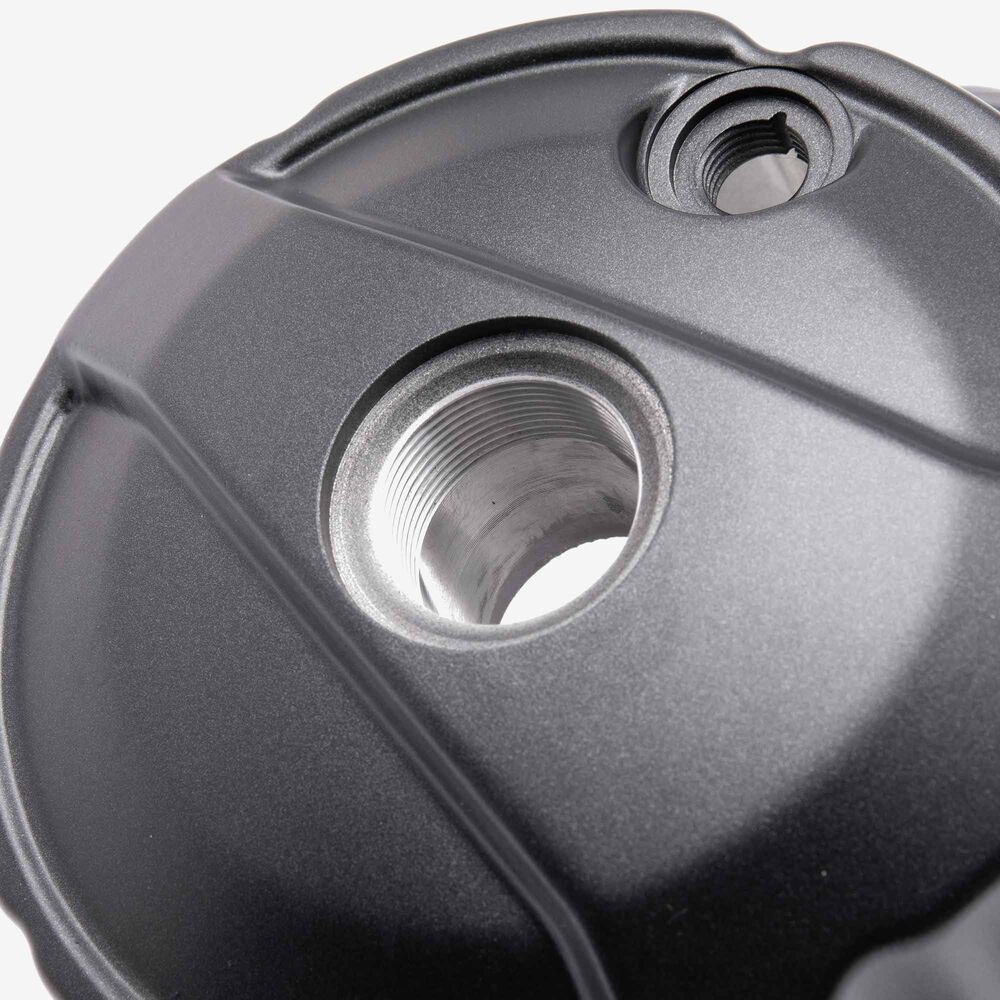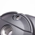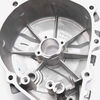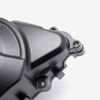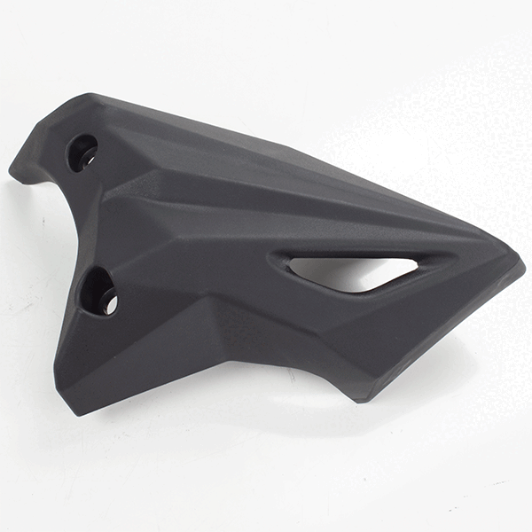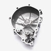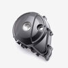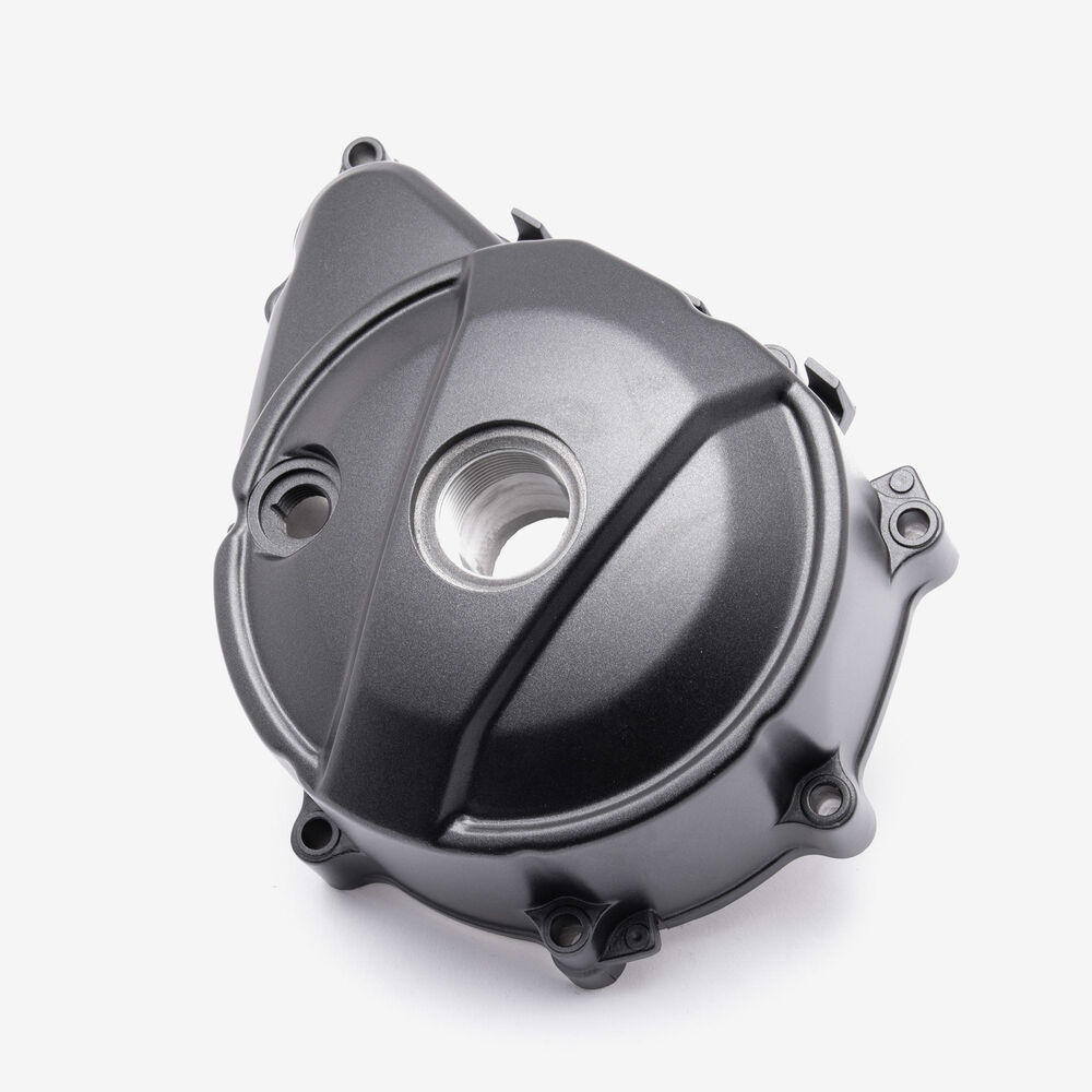 The left engine casing in a motorcycle encloses and protects the engine's internal components on the left side, ensuring structural integrity and safeguarding against dirt, debris, and damage.