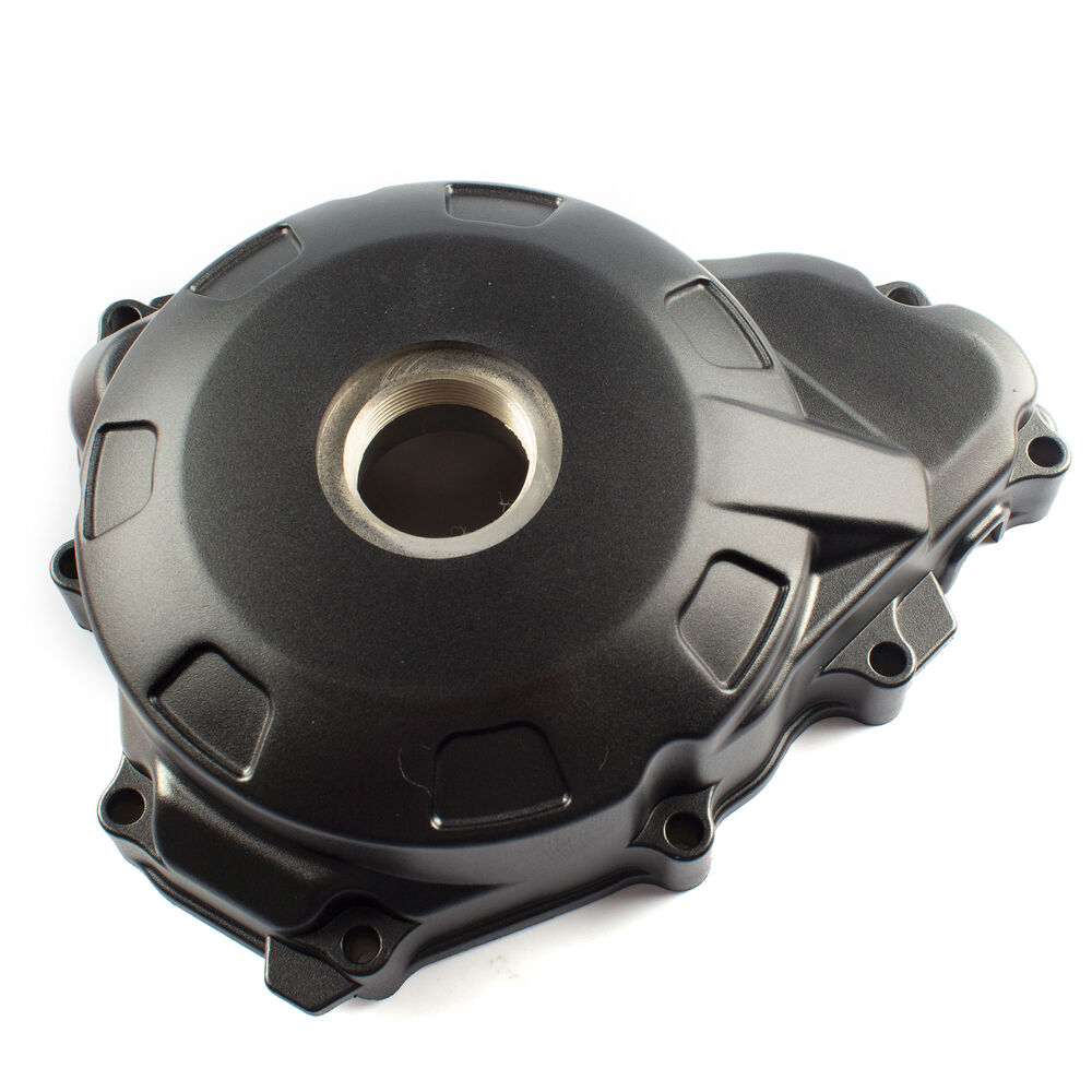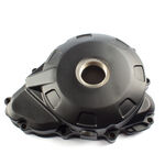 The left engine casing in a motorcycle encloses and protects the engine's internal components on the left side, ensuring structural integrity and safeguarding against dirt, debris, and damage.