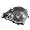 The left engine casing in a motorcycle encloses and protects the engine's internal components on the left side, ensuring structural integrity and safeguarding against dirt, debris, and damage.