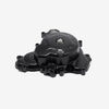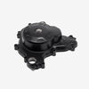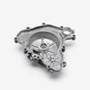 The left engine casing in a motorcycle encloses and protects the engine's internal components on the left side, ensuring structural integrity and safeguarding against dirt, debris, and damage.