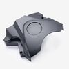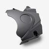 The left engine casing in a motorcycle encloses and protects the engine's internal components on the left side, ensuring structural integrity and safeguarding against dirt, debris, and damage.